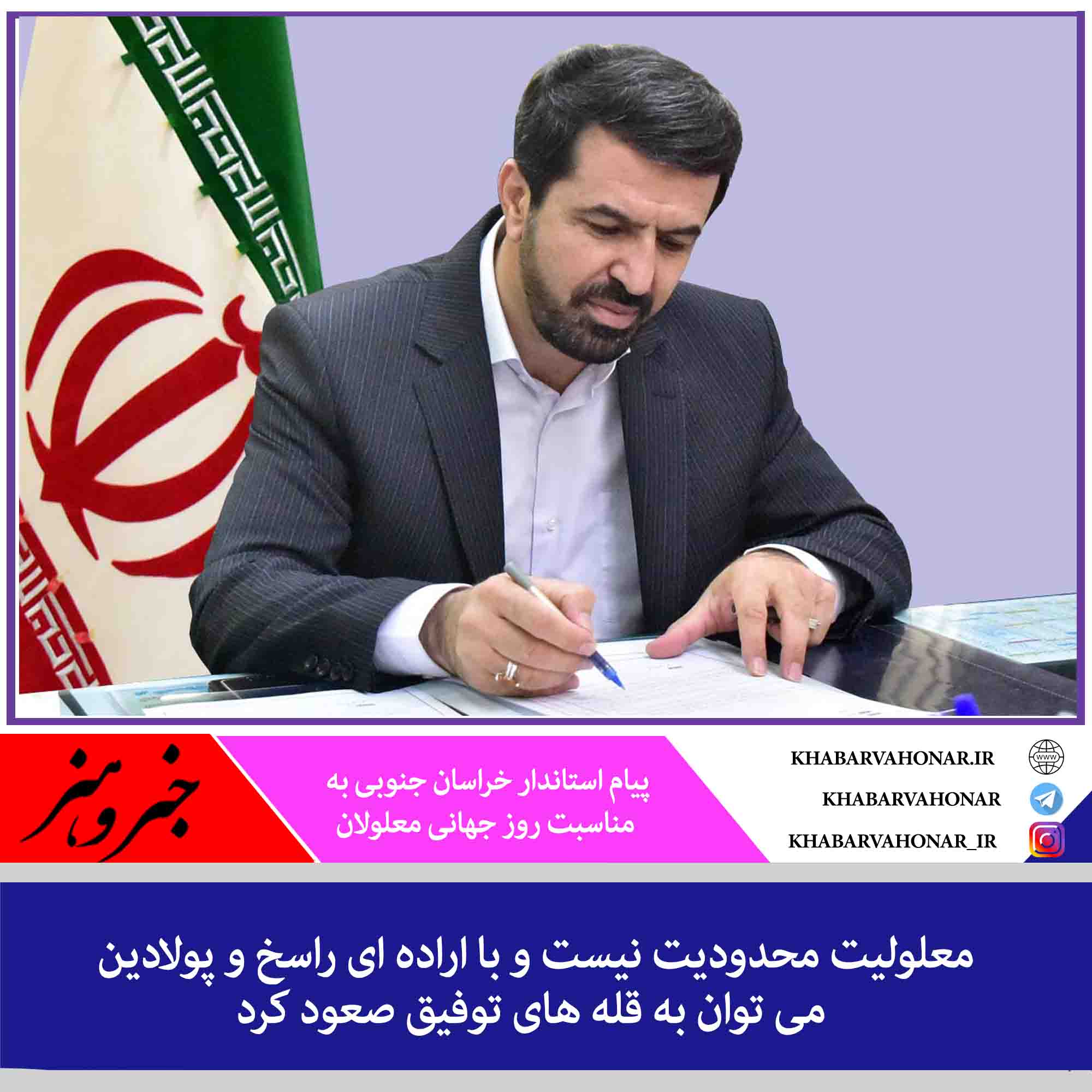 ?اینجانب ضمن تبریک این هفته به دست اندرکاران و فعالان این عرصه به ویژه افراد با نیازهای ویژه استان و خانواده های صبور آنان ، امید دارم با توجه به شعار امسال” ساخت جهانی بهتر پس از کرونا برای افراد دارای معلولیت (فراگیر، دسترس پذیر و پایدار)” همه با هم در سایه مشارکت و همدلی، زمینه های حضور فعال تر معلولان بزرگوار را در همه عرصه های اجتماعی هموارتر سازیم و با همت و تلاش دستگاه های اجرایی استان، راهکارهای اجرایی شدن قوانین حمایتی مصوب در مورد معلولان و همچنین استفاده بهینه آنها از خدمات و امکانات عمومی، رفاهی، فرهنگی، آموزشی، فرصت های شغلی را به عنوان مطالبه ای به حق از سوی جامعه معلولین ارائه نماییم.