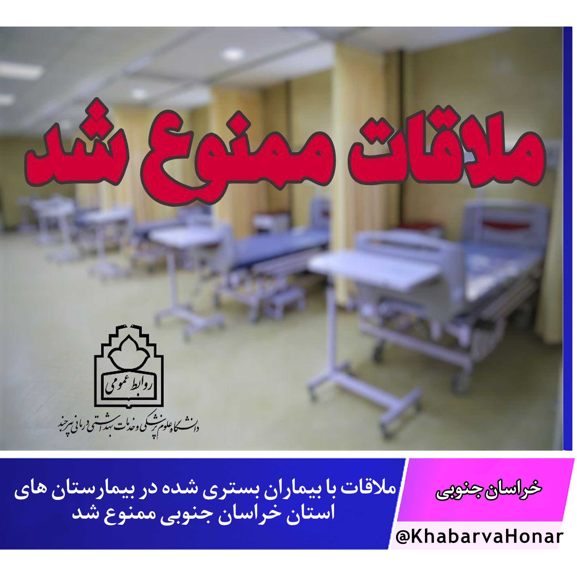 ⚠️در راستای جلوگیری از شیوع و بروز کرونا ویروس، ملاقات بیماران بستری شده در بیمارستان های استان ممنوع شد.
