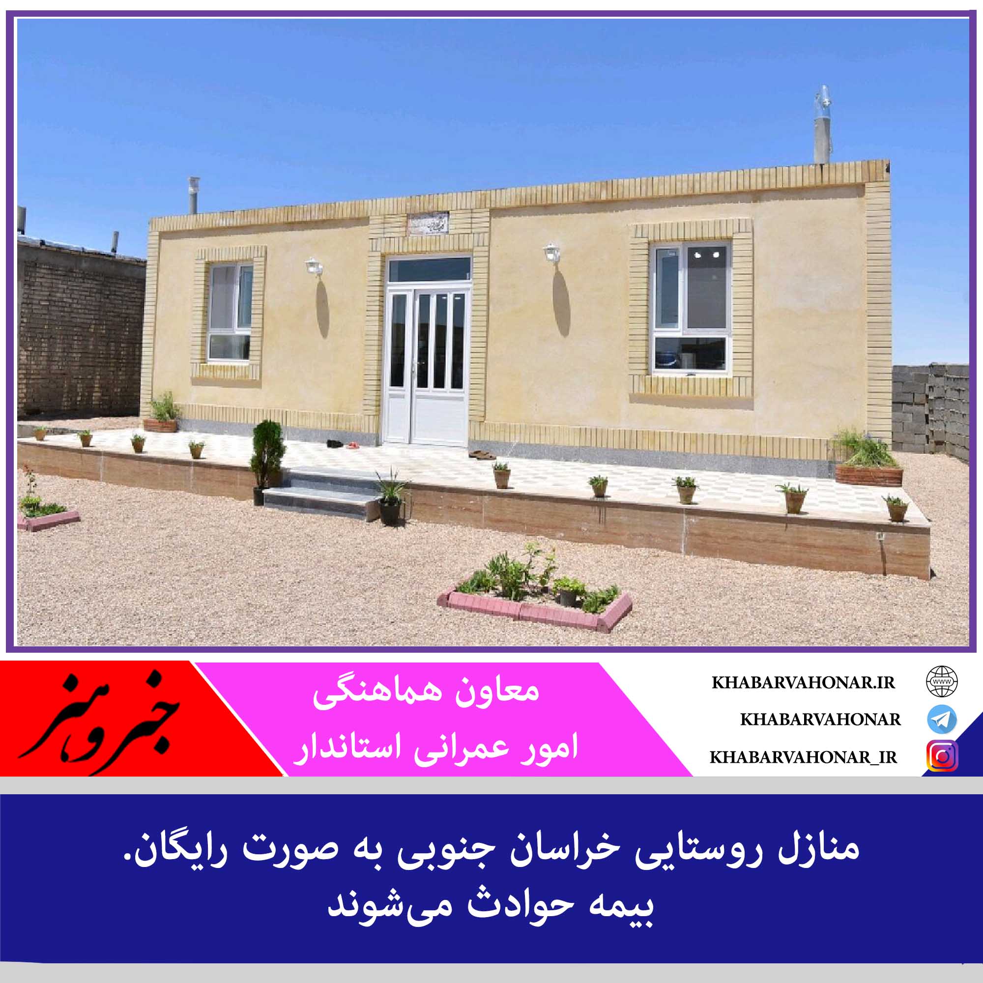 معاون هماهنگی امور عمرانی استاندار خراسان جنوبی گفت: صد درصد منازل روستایی استان به صورت رایگان بیمه حوادث میشوند.