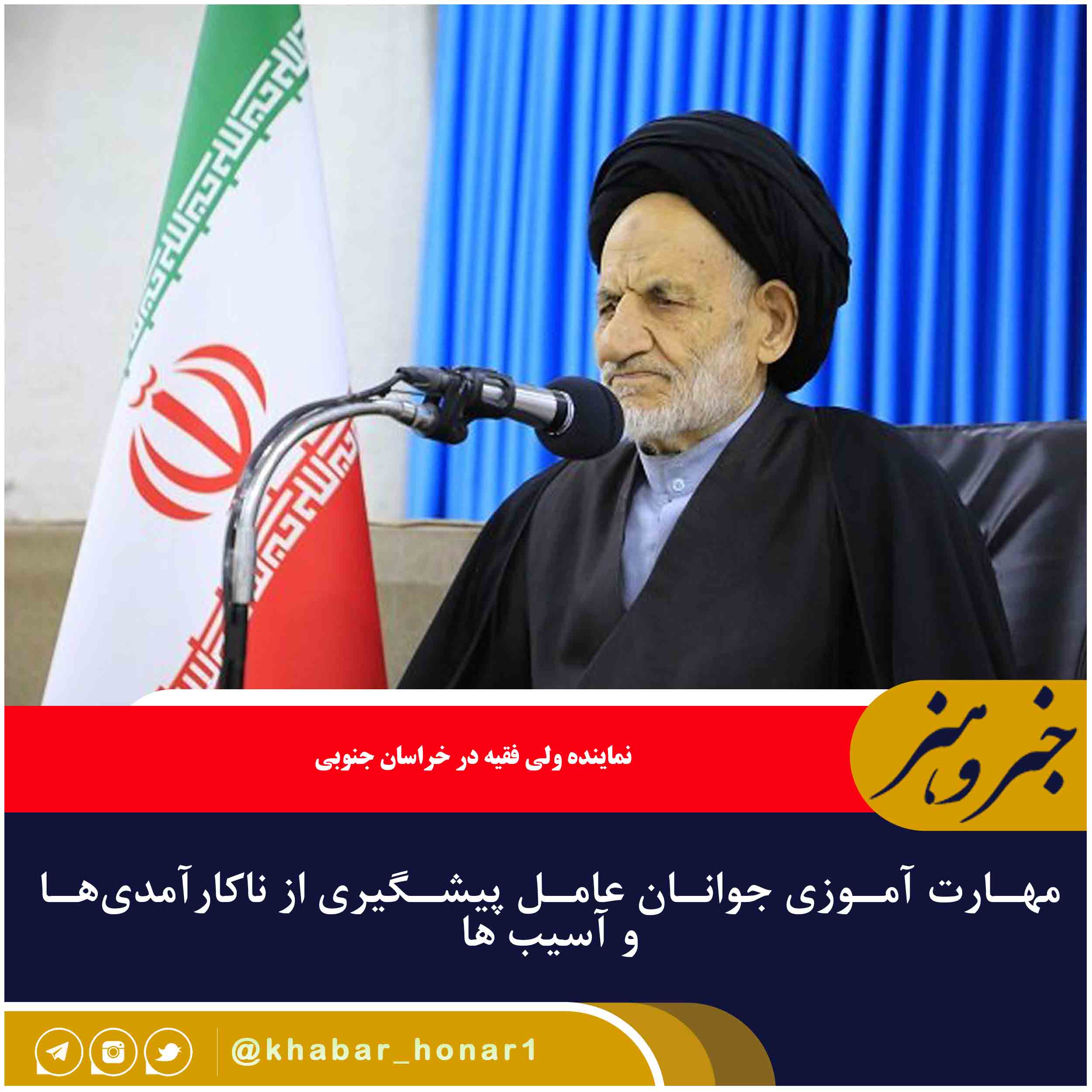 نماینده ولی فقیه در خراسان جنوبی با اشاره به آموزش های فنی و حرفه ای گفت: اینکه انسانی را کارآموز و توانمند میسازید از بسیاری از ناکارآمدیها و آسیب ها جلوگیری می شود.
