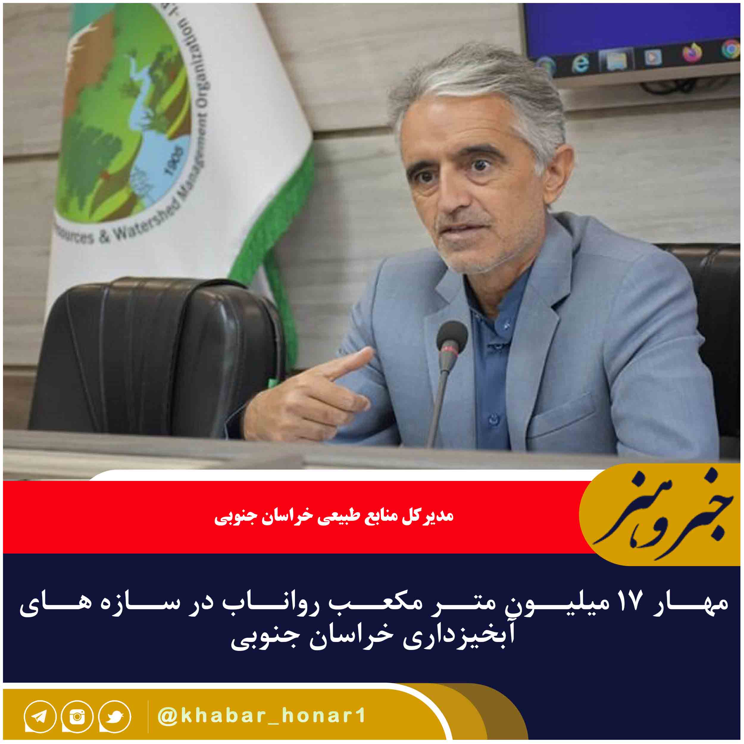 مدیرکل منابع طبیعی خراسان جنوبی گفت:طبق آخرین آمار با توجه به سیلاب در اردیبهشت ماه تا به امروز ۱۷ میلیون متر مکعب رواناب در سازههای آبخیزداری خراسان جنوبی مهار شده است.