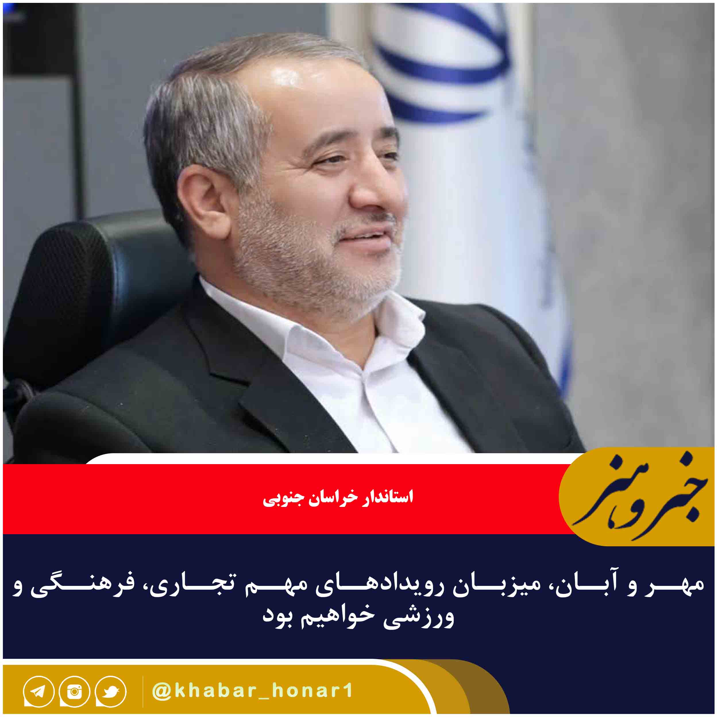 🔹استاندار خراسان جنوبی از برگزاری همزمان چند رویداد مهم در مهر و آبان در استان خبر داد و بر لزوم هماهنگی و حمایت همهجانبه برای موفقیت این برنامهها تأکید کرد.