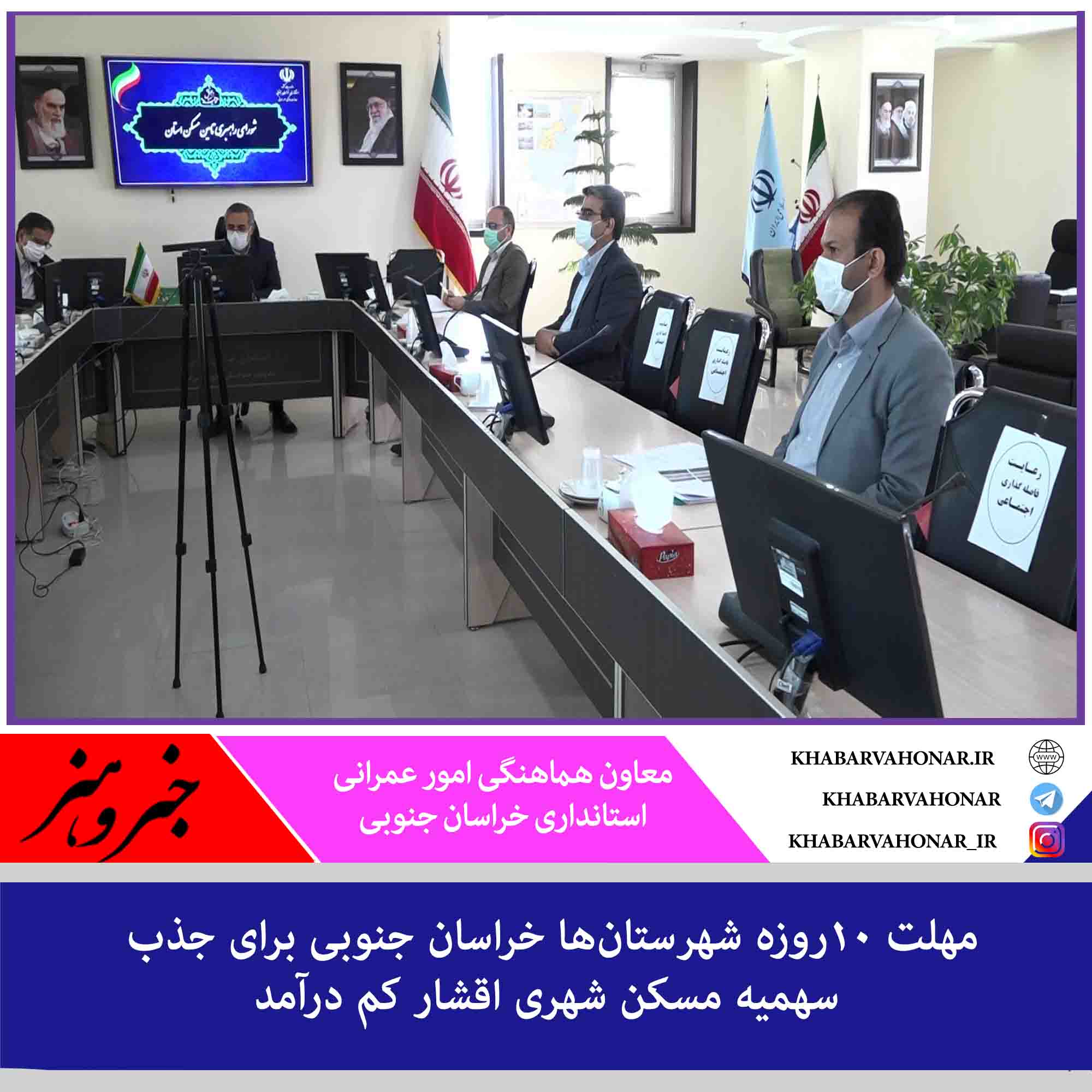 متقاضیان شهری خراسان جنوبی در شهرستانها تنها ۱۰روز مهلت دارند سهمیه مسکن شهری اقشار کم درآمد را جذب کنند.
