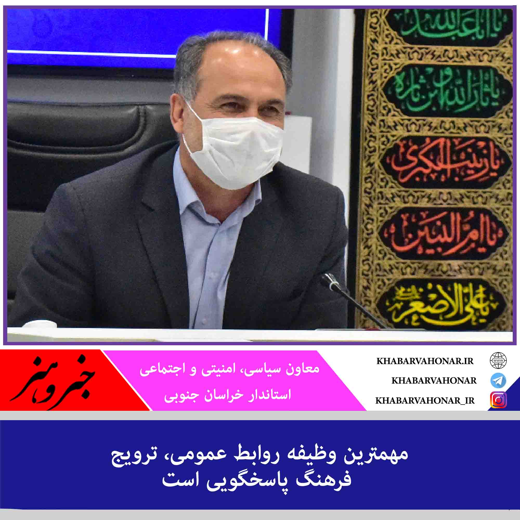 ?معاون سیاسی، امنیتی و اجتماعی استاندار خراسان جنوبی گفت: مهمترین وظیفه روابط عمومی، ترویج فرهنگ پاسخگویی در دستگاه اجرایی است.