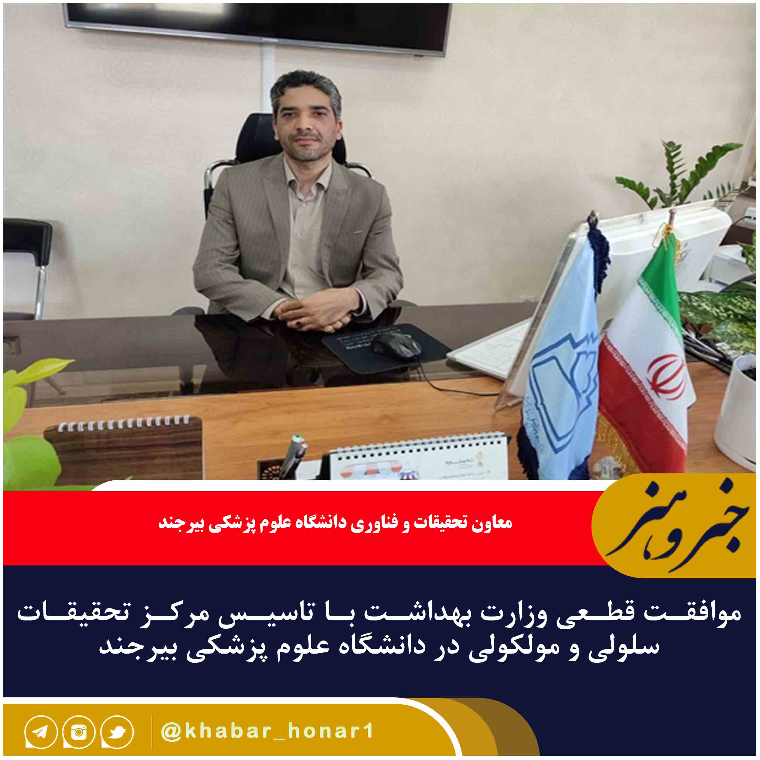 معاون تحقیقات و فناوری دانشگاه علوم پزشکی بیرجند از موافقت قطعی وزارت بهداشت با تاسیس مرکز تحقیقات سلولی و مولکولی در دانشگاه علوم پزشکی بیرجند خبر داد.