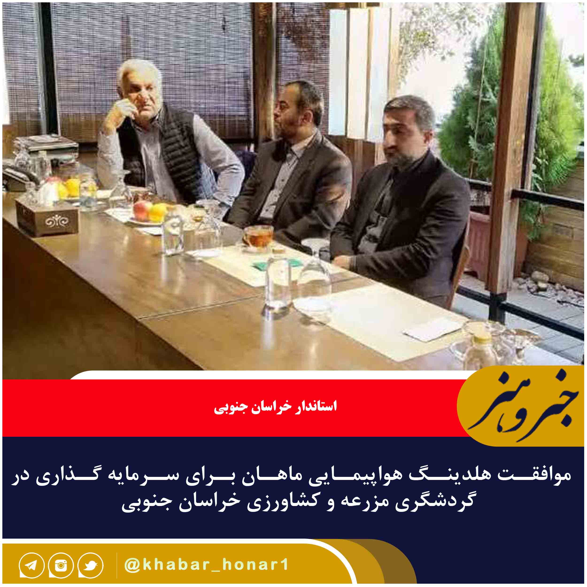 استاندار خراسان جنوبی از موافقت هلدینگ هواپیمایی ماهان با پیشنهاد سرمایهگذاری در زمینه گردشگری مزرعه و کشاورزی در این استان خبر داد.