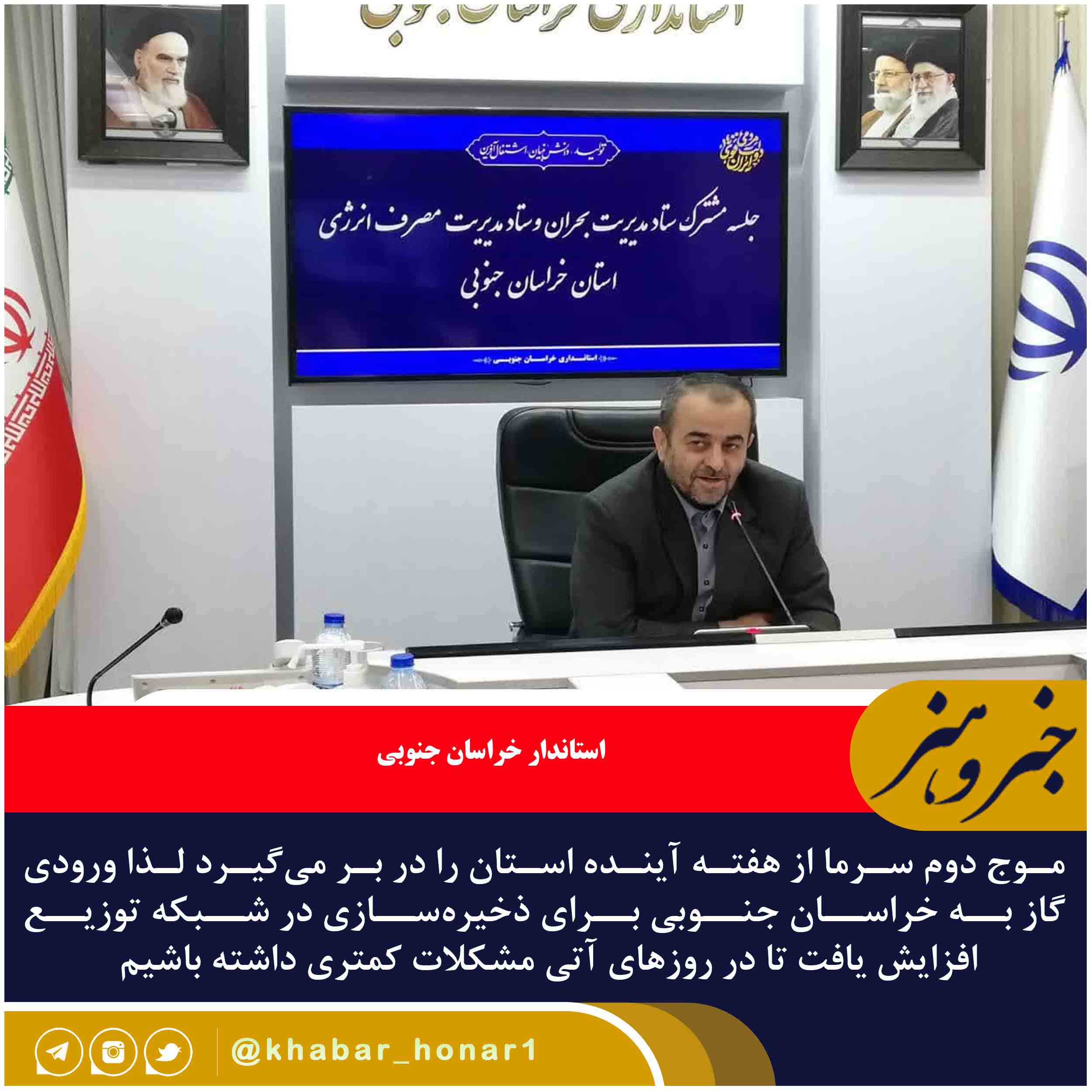 استاندار خراسان جنوبی گفت: موج دوم سرما از هفته آینده استان را در بر میگیرد لذا ورودی گاز به خراسان جنوبی برای ذخیرهسازی در شبکه توزیع افزایش یافت تا در روزهای آتی مشکلات کمتری داشته باشیم.