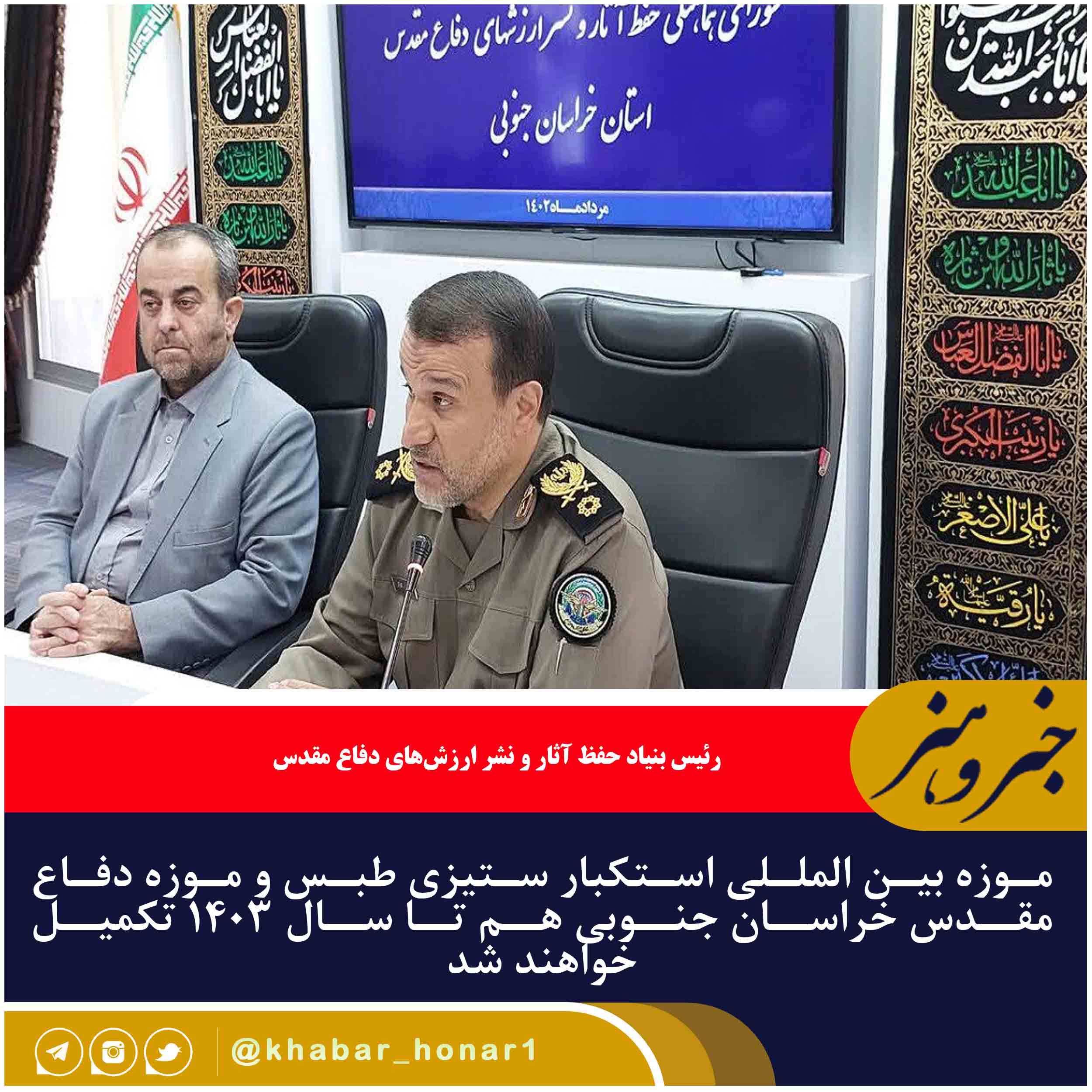 رئیس بنیاد حفظ آثار و نشر ارزشهای دفاع مقدس گفت: موزه بین المللی استکبار ستیزی طبس و موزه دفاع مقدس خراسان جنوبی هم تا سال ۱۴۰۳ تکمیل خواهند شد.