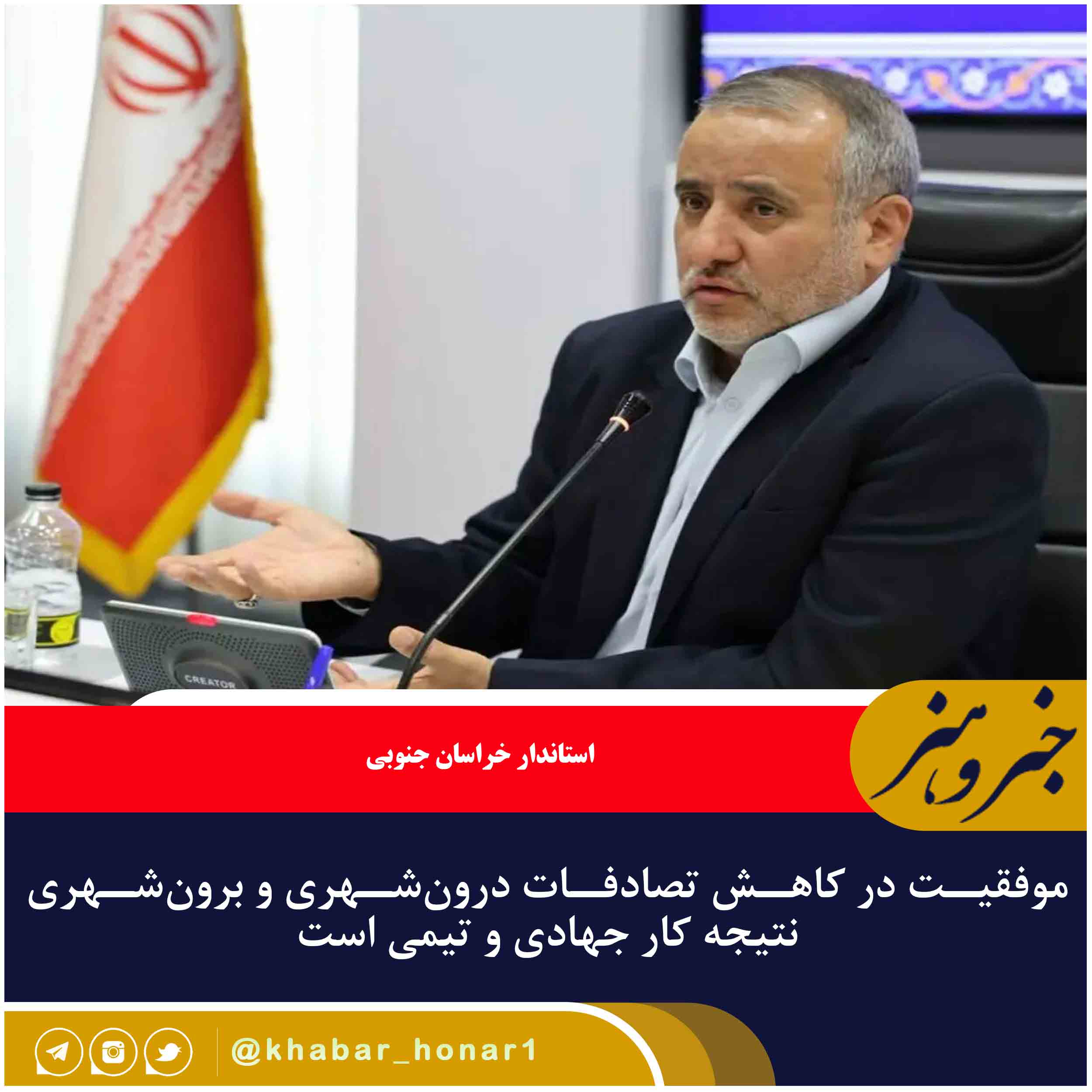 استاندار خراسان جنوبی با اشاره به آمار تصادفات فوتی و جرحی در استان افزود: اینکه اجازه ندادیم در تصادفات کودکی از داشتن پدر محروم شود، یا مادری به دلیل یک تصادف خانه‌نشین و زمین‌گیر باشد کار ارزشمندی بوده و این وظیفه انسانی، الهی و مدیریتی است که با کار شبانه‌روزی و تلاش بی‌وقفه، امنیت جاده‌ها را تضمین کنیم.