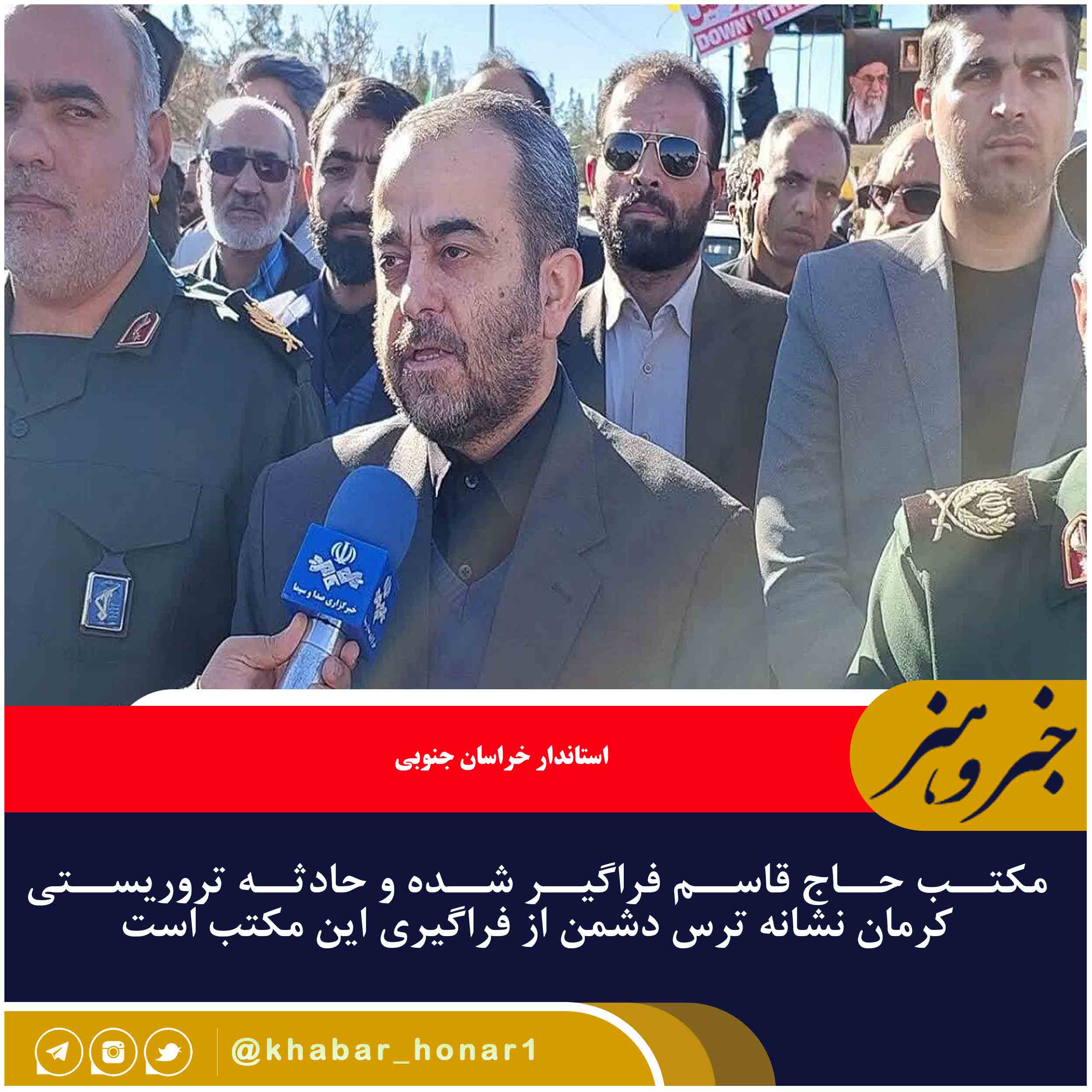 استاندار خراسان جنوبی گفت: مکتب حاج قاسم فراگیر شده و حادثه تروریستی کرمان نشانه ترس دشمن از فراگیری این مکتب است.