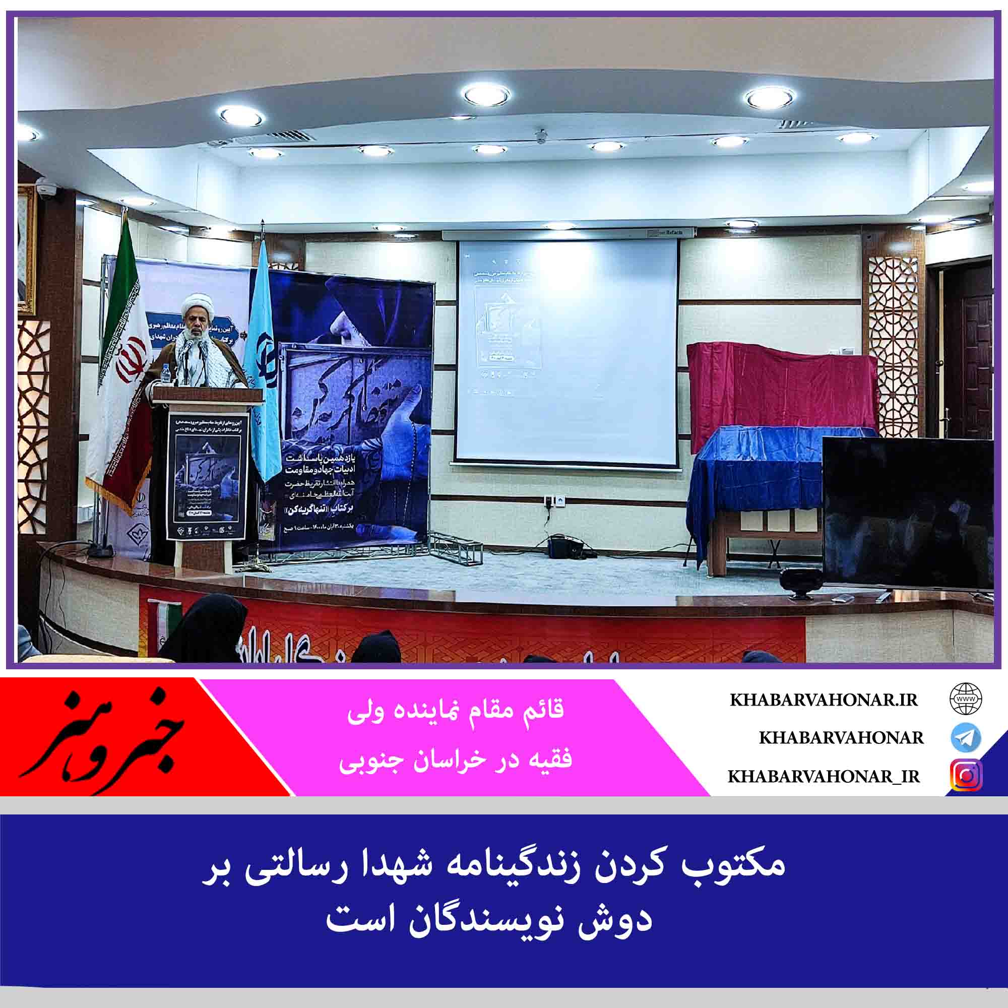 قائم مقام نماینده ولی فقیه در خراسان جنوبی گفت: نوشتن کتاب درباره زندگینامه، خاطرات، وصیت نامه شهیدان و حتی سخنان زیبای آن ها، رسالت بزرگی بر دوش نویسندگان است.