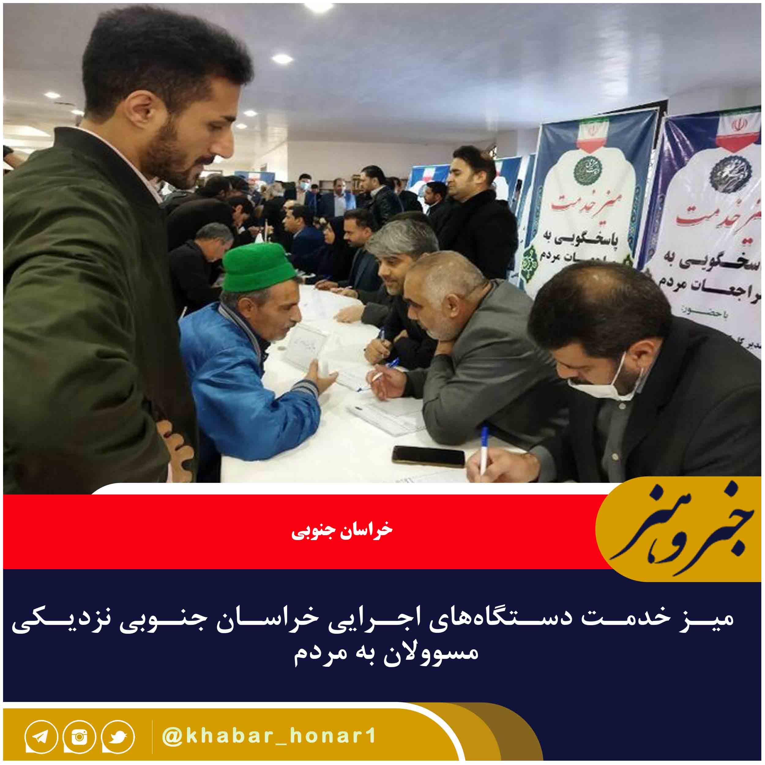 همچنین میز خدمت دستگاههای اجرایی امروز (جمعه) در تمامی پایگاههای نماز جمعه استان خراسان جنوبی برپا شد و در مرکز استان مدیران، معاونان و کارشناسان ادارات مختلف به سوالات، درخواستها و مشکلات مردم رسیدگی کردند.