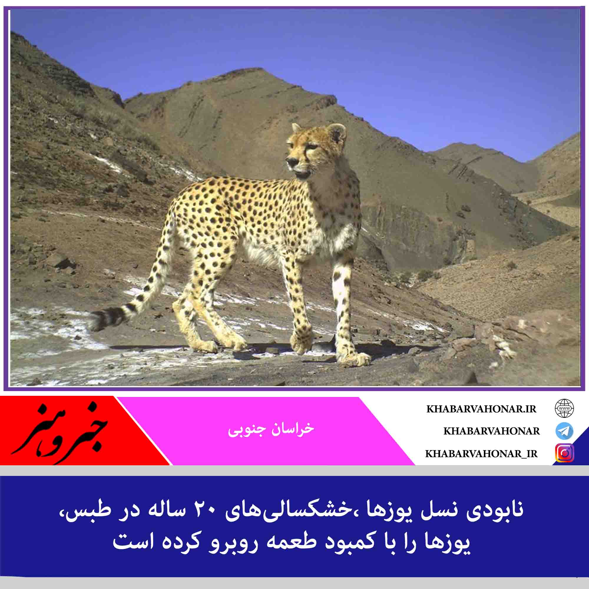 رئیس اداره حفاظت محیط زیست طبس با بیان اینکه خشکسالیهای ۲۰ ساله در طبس، یوزها را با کمبود طعمه روبرو کرده است، گفت: جمعیت یوزپلنگ آسیایی در ایران که تا ۸۰ سال پیش تا ۲۰۰ قلاده برآورد میشد، اکنون به کمتر از ۷۰ قلاده رسیده است.