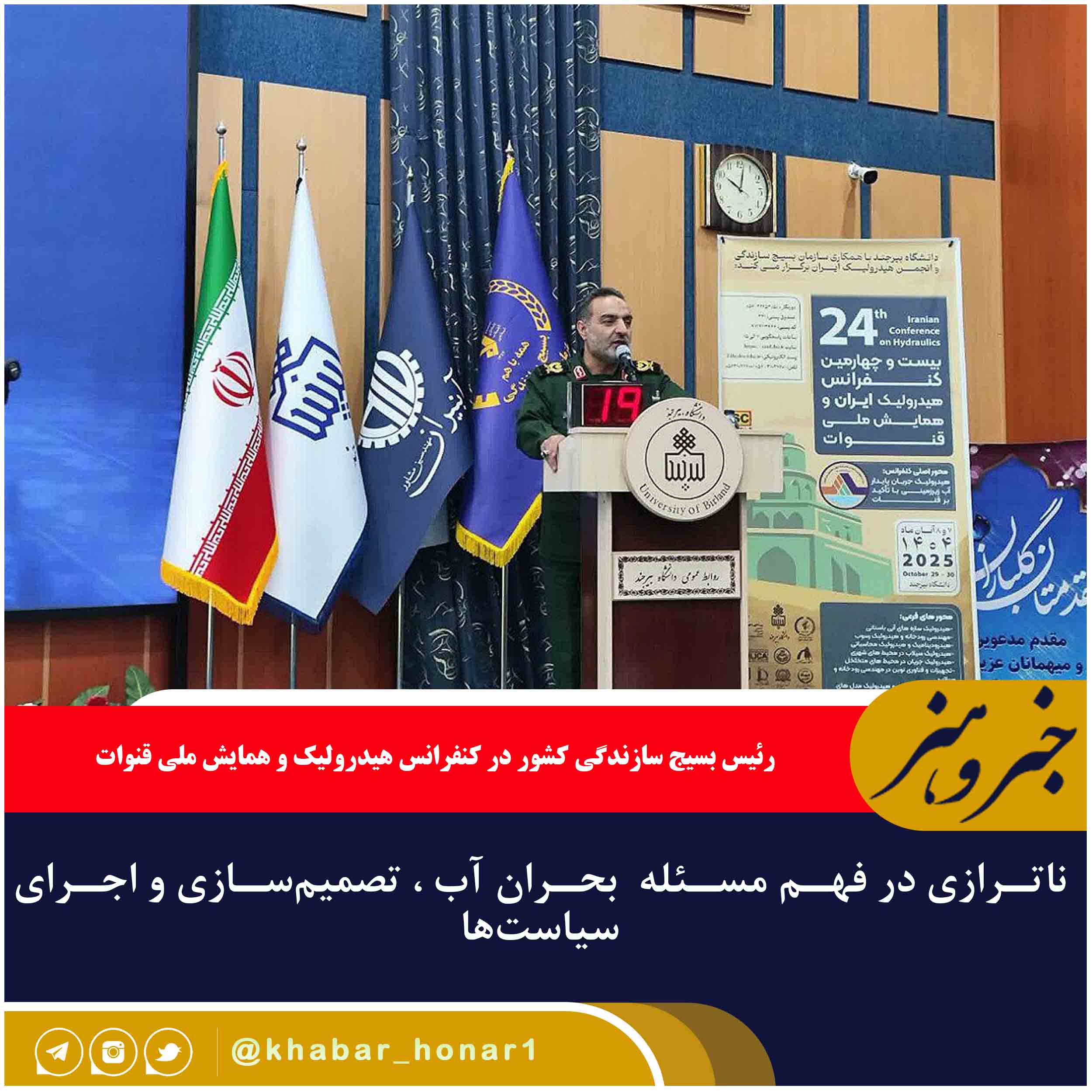 رئیس بسیج سازندگی کشور در کنفرانس هیدرولیک و همایش ملی قنوات با تأکید بر ضرورت تغییر نگرش مدیریتی در بحران آب گفت: امروز باید با پیشفرض بیآبی حرکت کنیم؛ نمیشود در آستانه بحران قرار داشته باشیم و همچنان کشتهای آببر یا صنایع پرمصرف را ادامه دهیم.