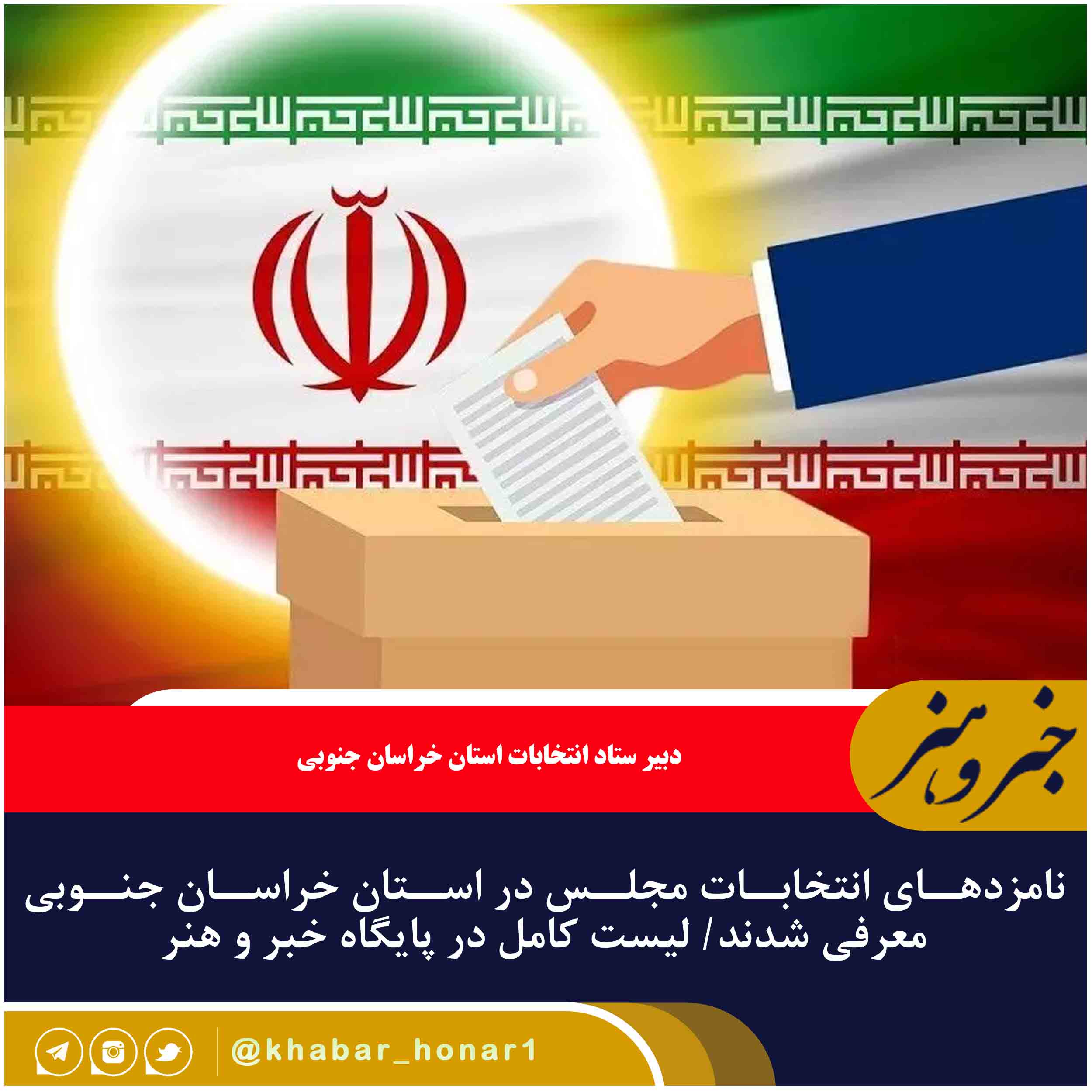دبیر ستاد انتخابات استان خراسان جنوبی اسامی نامزدهای انتخابات در چهار حوزه انتخابیه استان را به قرار ذیل اعلام کرد.