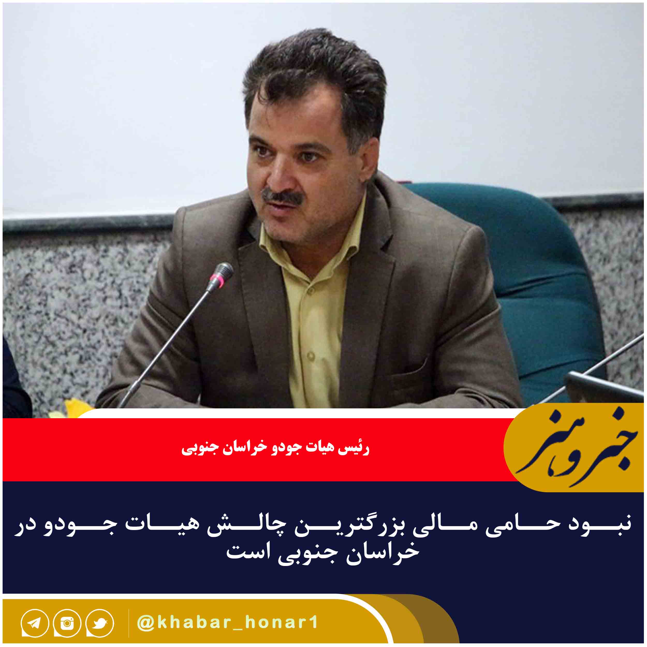 رئیس هیات جودو خراسان جنوبی گفت: نبود حامی مالی و علاقهمند نبودن بنگاههای اقتصادی استان به این موضوع از چالشهای بزرگ هیات جودو در استان است که در این خصوص نیازمند نگاه و حمایت ویژه مسئولان هستیم.