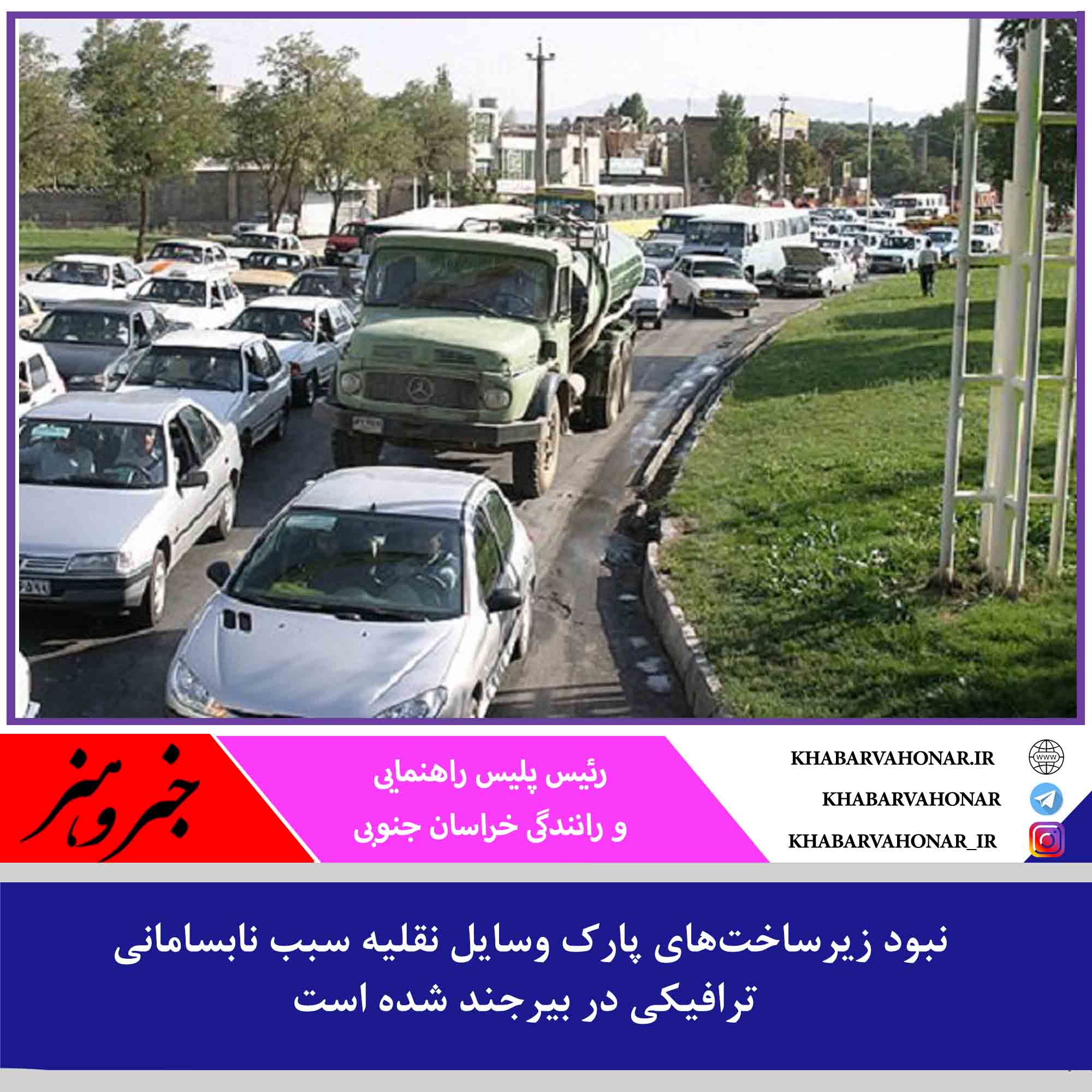 رئیس پلیس راهنمایی و رانندگی خراسان جنوبی اظهار کرد: نبود جای پارک در معابر شهرستان بیرجند خصوصا در هسته مرکزی شهر، مشکلات زیادی برای شهروندان بوجود آورده است.