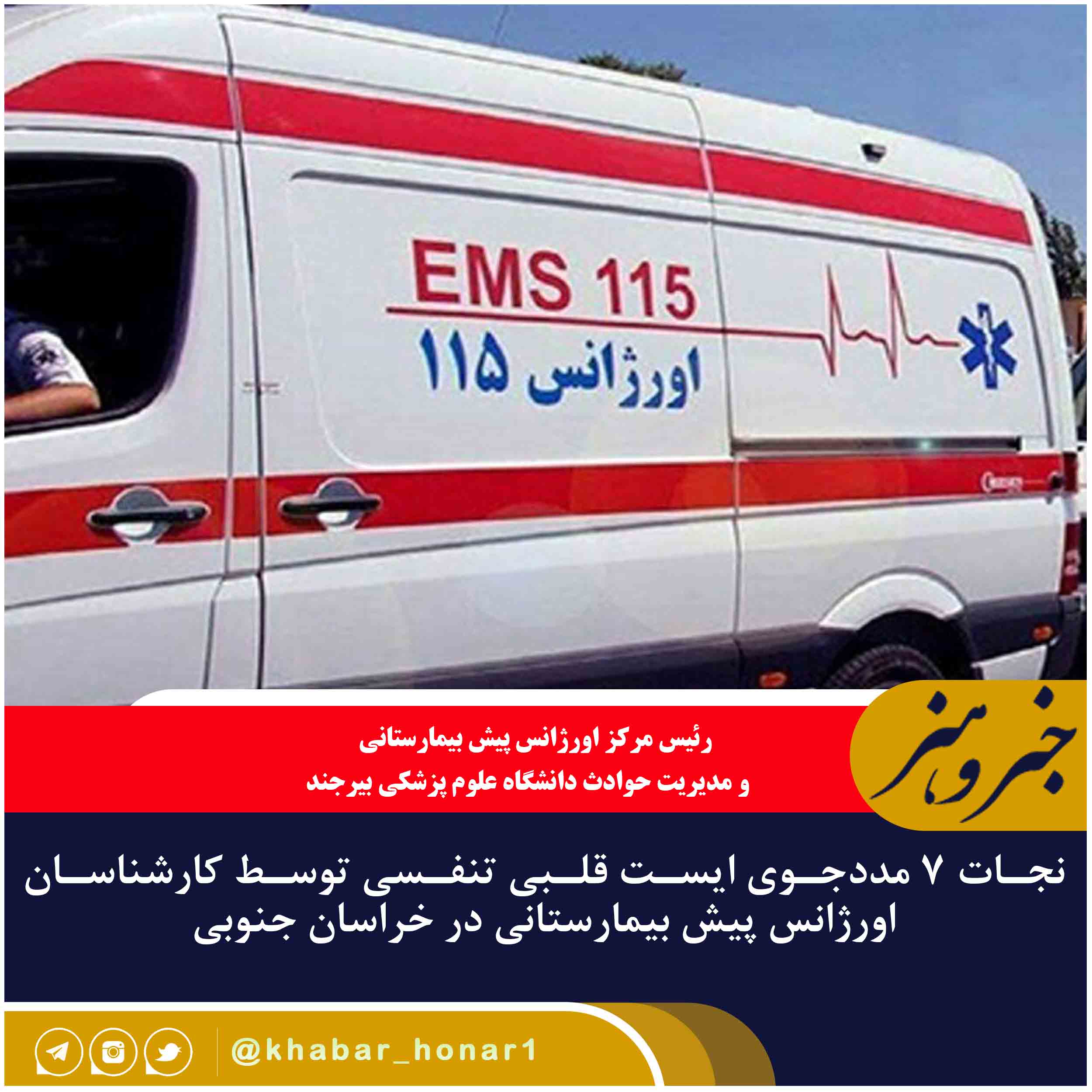 رئیس مرکز اورژانس پیش بیمارستانی و مدیریت حوادث دانشگاه علوم پزشکی بیرجند از نجات ۷ مددجوی ایست قلبی تنفسی در نیمه اول آبان امسال در استان خبر داد.
