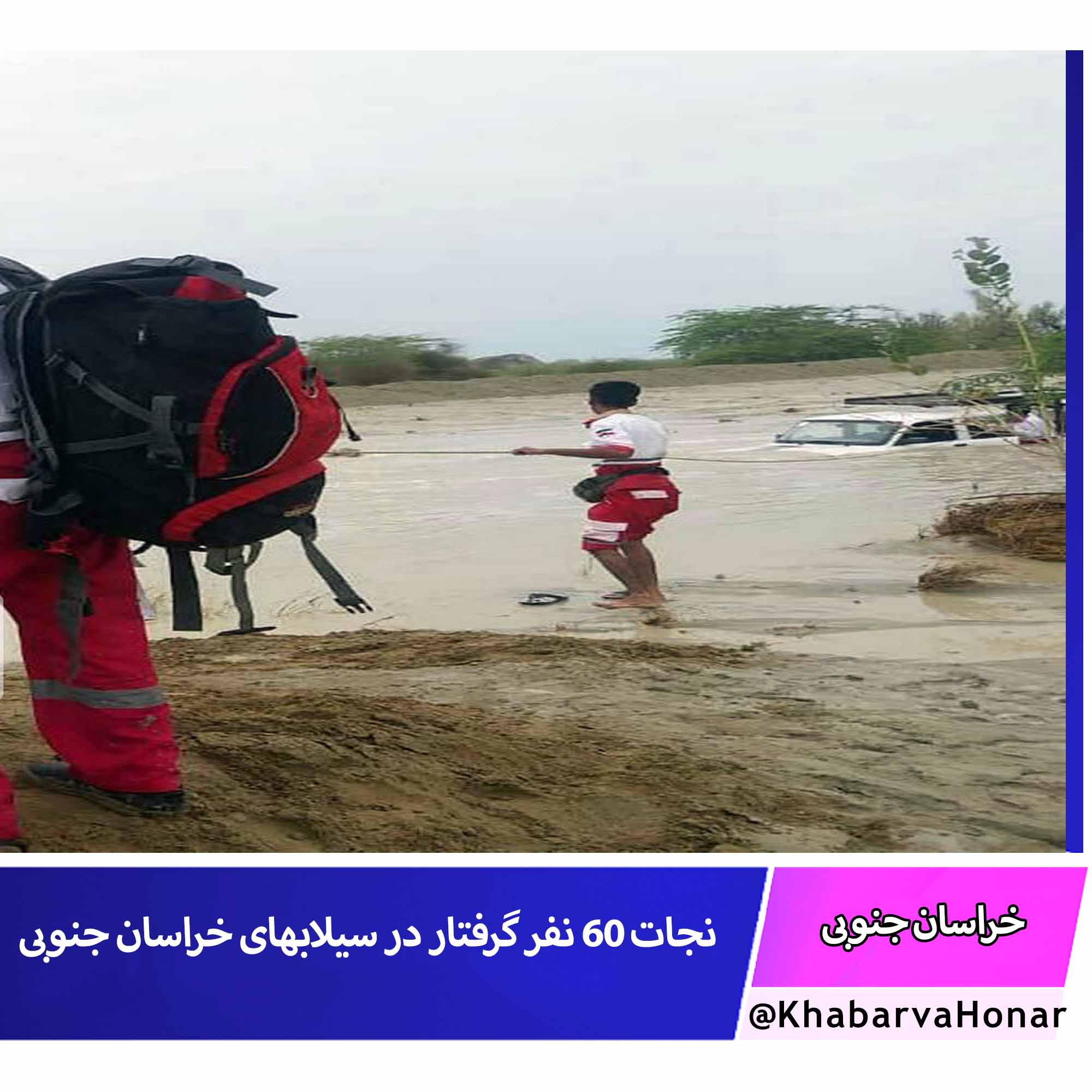 ۶۰ نفر از افراد گرفتار در سیلابهای امروز استان با کمک نیروهای امدادی_ عملیاتی نجات یافتند.