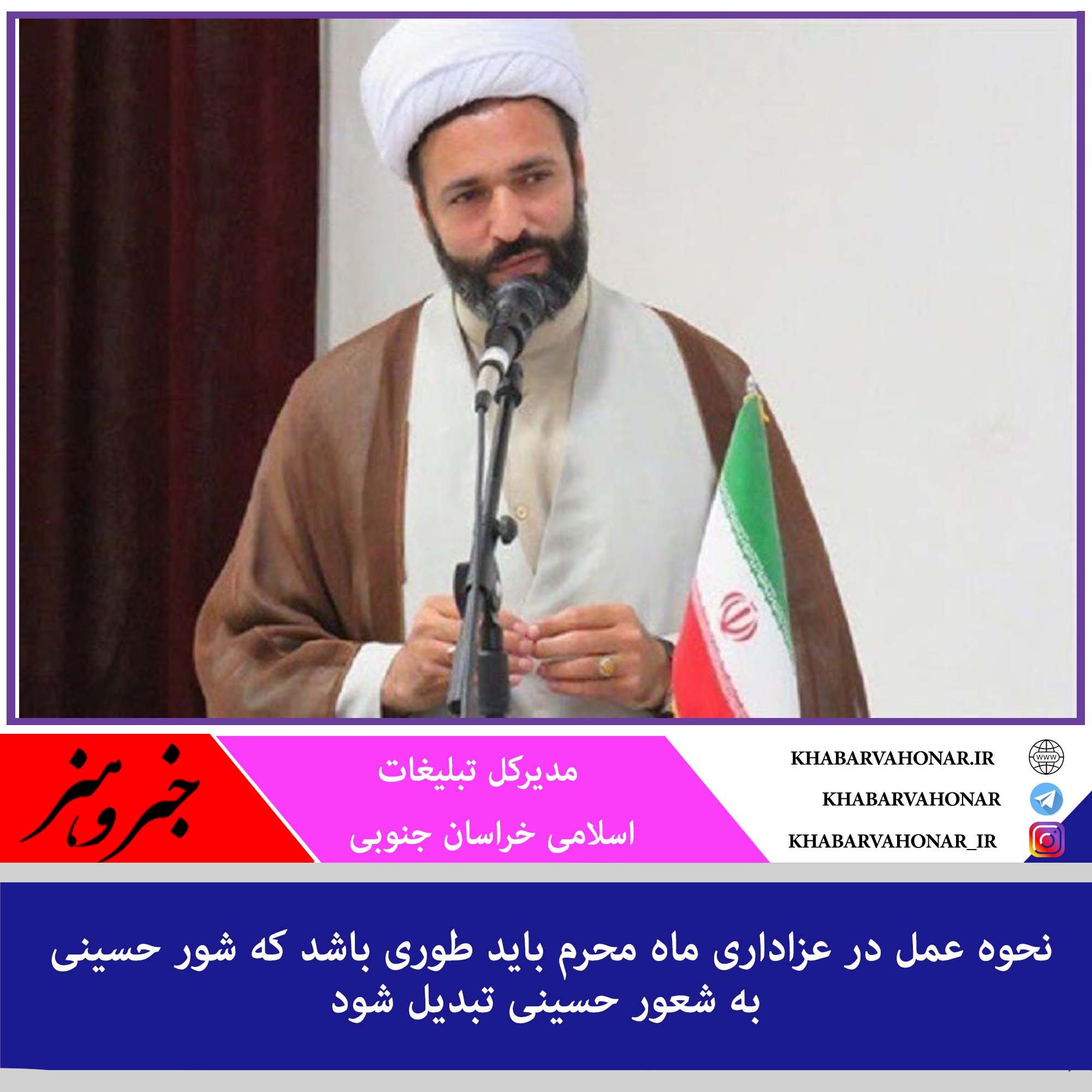 مدیرکل تبلیغات اسلامی خراسان جنوبی گفت: نحوه عمل در عزاداری ماه محرم باید طوری باشد که شور حسینی به شعور حسینی تبدیل شود و تاکید بر برگزاری روضهخوانیهای خانوادگی و خاندانی است.