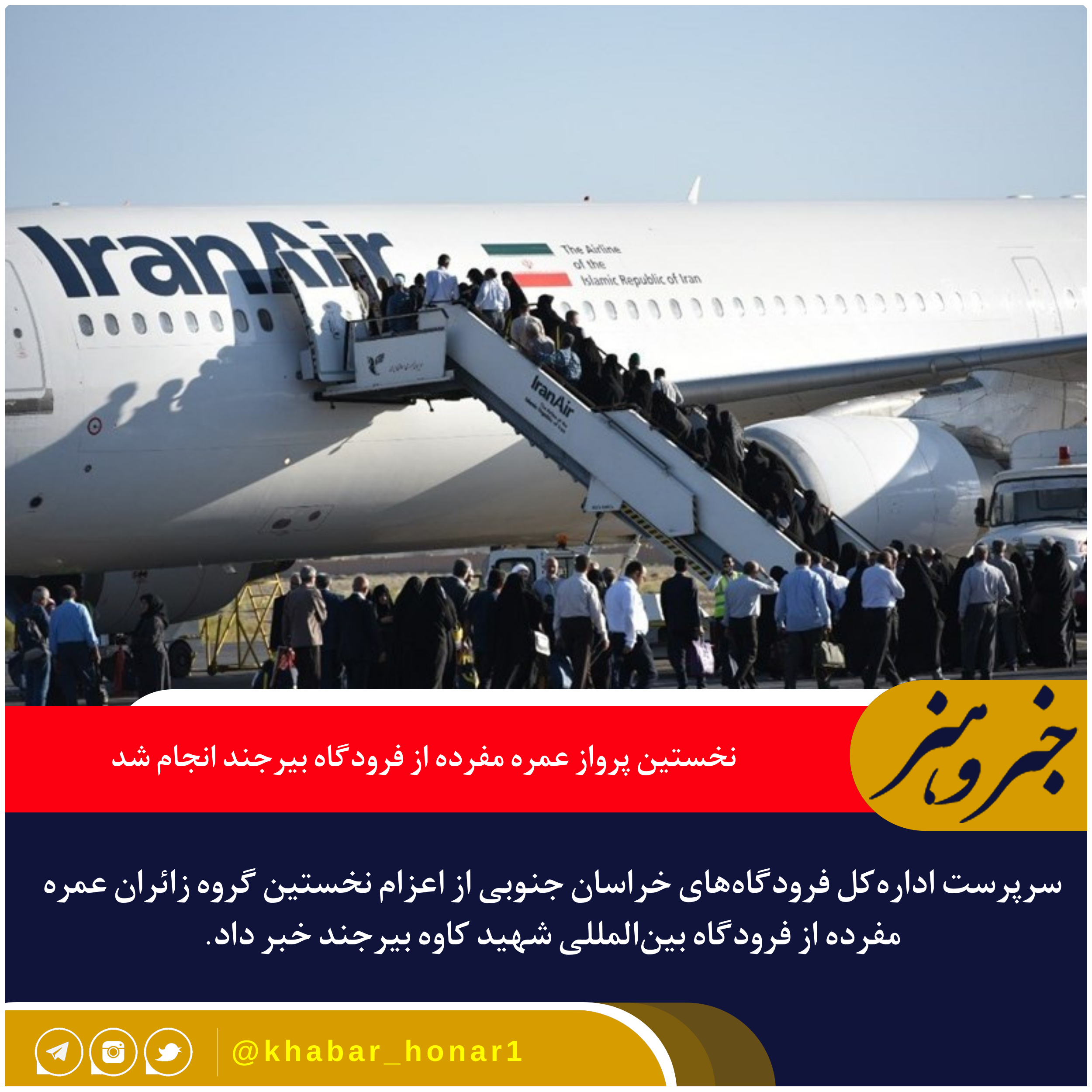 به گزارش خبر و هنر، سرپرست ادارهکل فرودگاههای خراسان جنوبی از اعزام نخستین گروه زائران عمره مفرده از فرودگاه بینالمللی شهید کاوه بیرجند خبر داد.