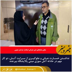 ?معاون هماهنگی امور عمرانی استاندار خراسان جنوبی تأکید کرد: نداشتن خسارت جانی و جلوگیری از سرایت آتش به دیگر واحدها، دو کار مهم در مدیریت حادثه آتش سوزی منطقه ویژه اقتصادی بیرجند بود.