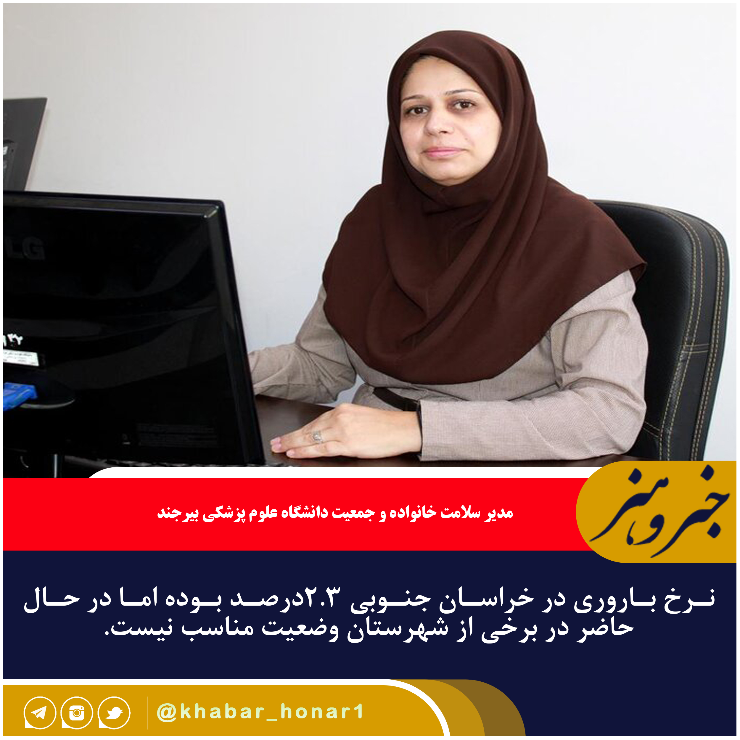 مدیر سلامت خانواده و جمعیت دانشگاه علوم پزشکی بیرجند گفت: نرخ باروری در استان ۲.۳درصد بوده اما در حال حاضر در برخی از شهرستان وضعیت مناسب نیست.