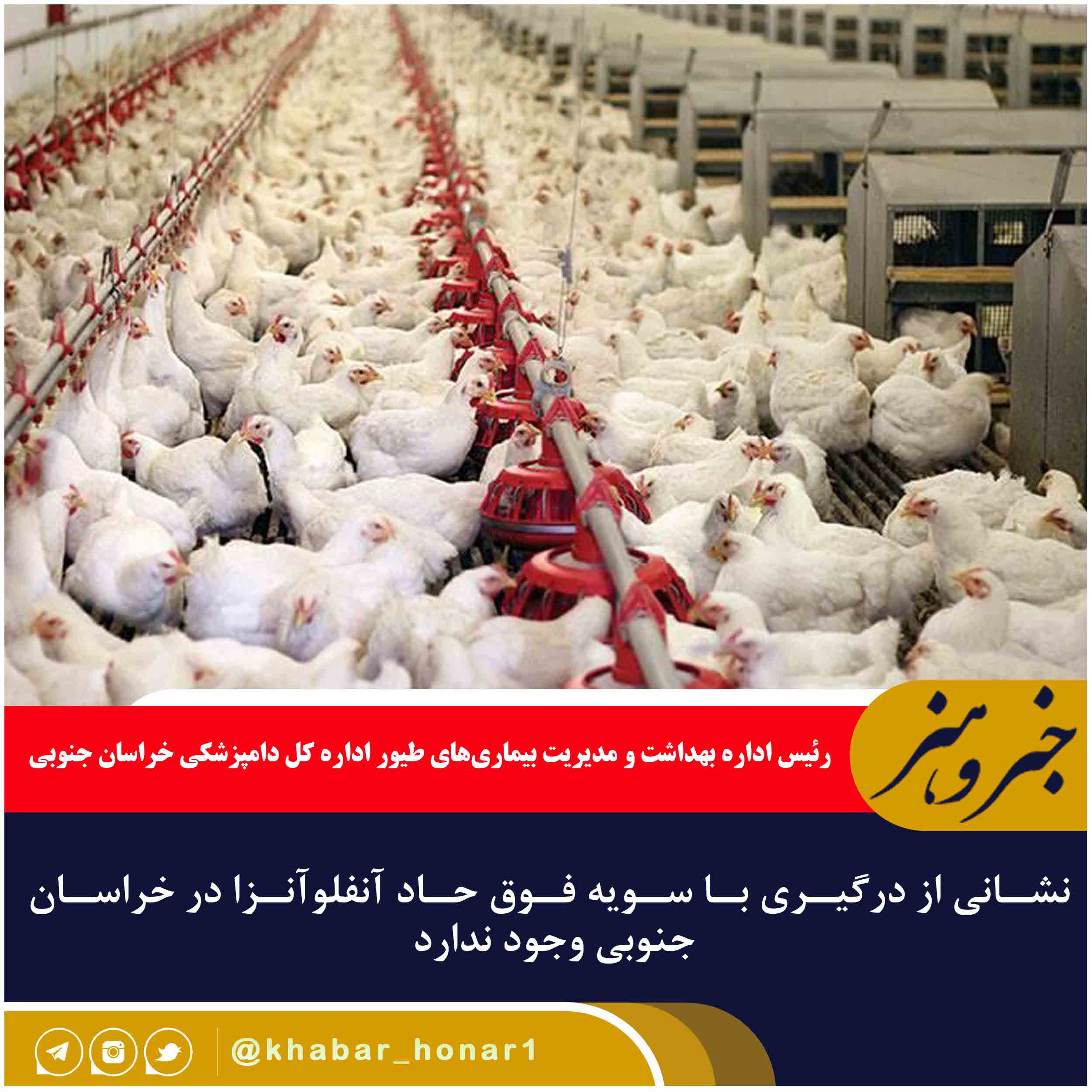 رئیس اداره بهداشت و مدیریت بیماریهای طیور اداره کل دامپزشکی خراسان جنوبی با اعلام پایان طرح پایش آنفلوآنزای فوق حاد در طیور صنعتی استان گفت: نشانی از درگیری با سویه فوق حاد آنفلوآنزا در خراسان جنوبی وجود ندارد.