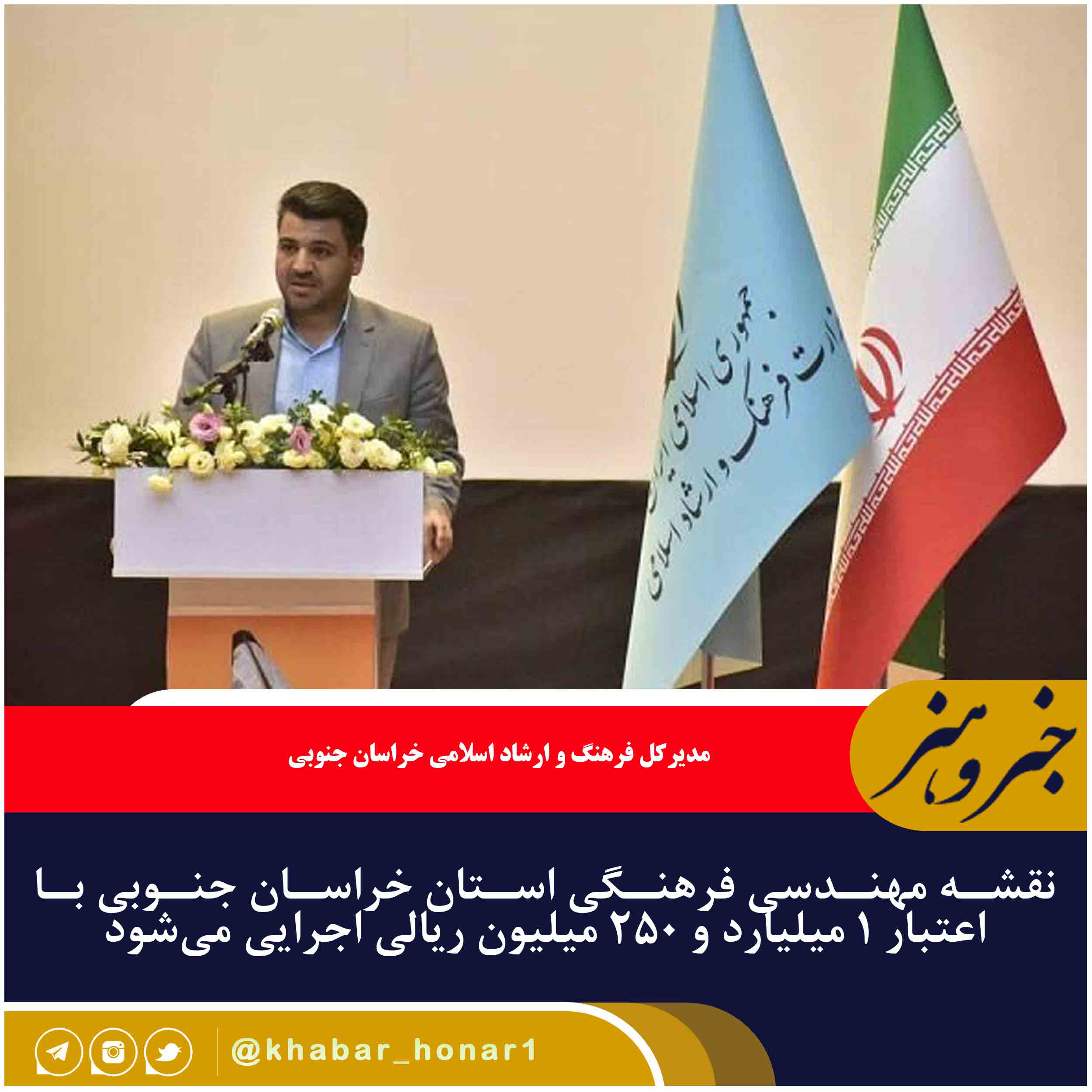 مدیرکل فرهنگ و ارشاد اسلامی خراسان جنوبی از تخصیص اعتبار ۱ میلیارد و ۲۵۰ میلیون ریالی در جلسه شورای برنامهریزی و توسعه خراسان جنوبی، از محل اعتبارات پژوهشی این شورا به منظور تدوین نقشه مهندسی فرهنگی استان خبر داد.