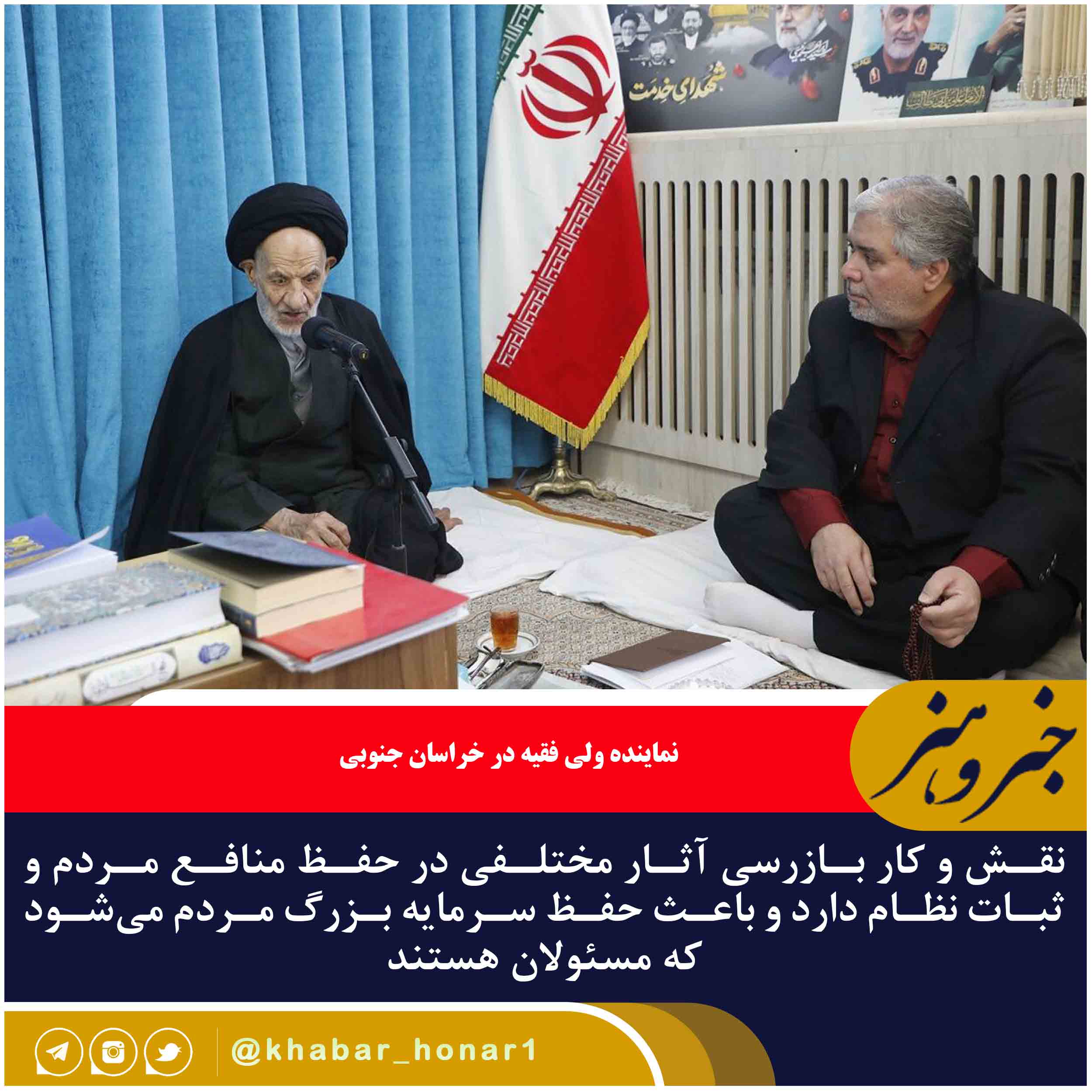 حجت الاسلام و المسلمین سید علیرضا عبادی روز سه شنبه در دیدار رئیس کل بازرسی استان خراسان جنوبی افزود: نقش و کار بازرسی آثار مختلفی در حفظ منافع مردم و ثبات نظام دارد و باعث حفظ سرمایه بزرگ مردم میشود که مسئولان هستند.