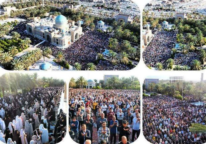 مردمی که به شکرانه یک ماه عبادت و بندگی پروردگارشان، توفیق روزهداری را در کنار هم جشن میگیرند و در صفوف به هم پیوسته به ریسمان الهی چنگ میزنند تا در ماههای دیگر سال از فیوضات ماه میهمانی خدا بهرهمند باشند.