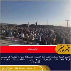 گزارشها از ۱۱ شهرستان استان خراسان جنوبی حاکی است نماز عید فطر در شهرها و بخشهای مختلف این استان با حضور گسترده مردم اقامه شد.