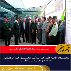 فرمانده سپاه انصارالرضا (علیهالسلام) گفت: این نمایشگاه بیانگر توانمندی ها، خودباوری ها و اقداماتی است که توسط همه رزمندگان، ایثارگران و نهادهای دولتی انجام شده و پیشرفت، پویایی، امید و حرکت رو به جلو را به ملت ما و ناامیدی را به دشمن هدیه می دهد.