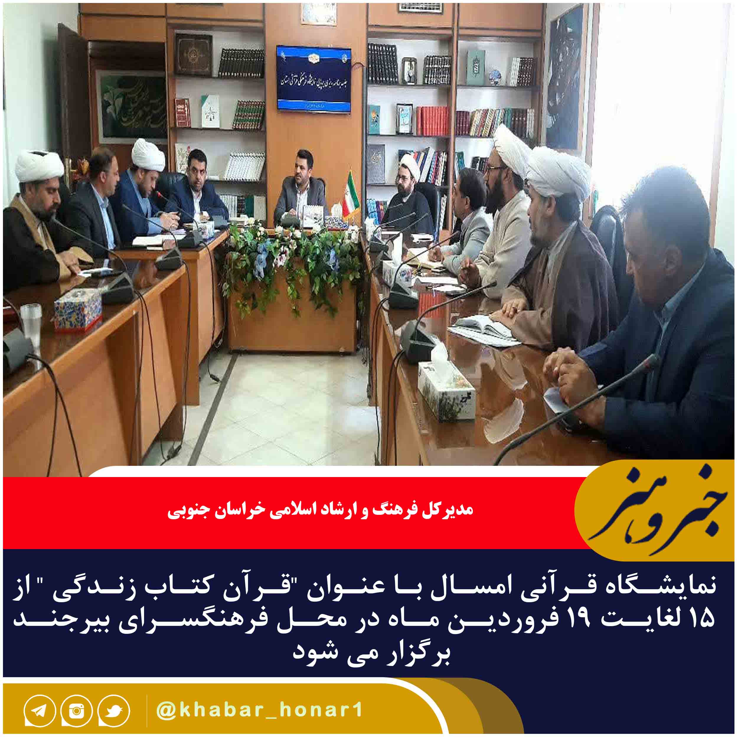 گفتنی است نمایشگاه قرآنی امسال با عنوان “قرآن کتاب زندگی ” از ۱۵ لغایت ۱۹ فروردین ماه در محل فرهنگسرای بیرجند برگزار خواهد شد.