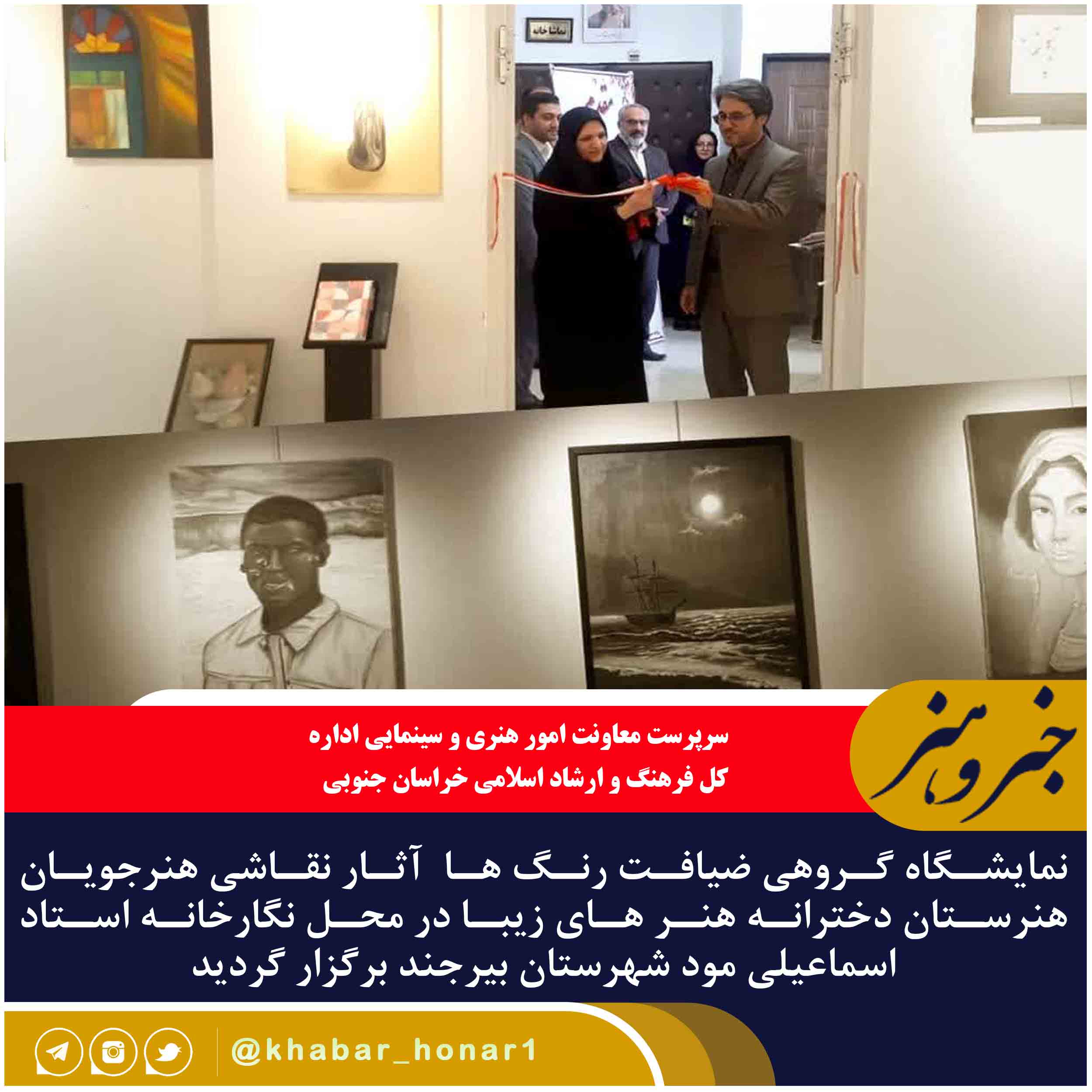 نمایشگاه گروهی ضیافت رنگ ها آثار نقاشی هنرجویان هنرستان دخترانه هنر های زیبا در محل نگارخانه استاد اسماعیلی مود شهرستان بیرجند برگزار گردید.با حضور سرپرست معاونت امور هنری و سینمایی اداره کل فرهنگ و ارشاد اسلامی، رئیس آموزش و پرورش بیرجند و جمعی از مسئولین استان نمایشگاه آثار نقاشی هنرآموزان هنر های زیبا بیرجند افتتاح گردید.