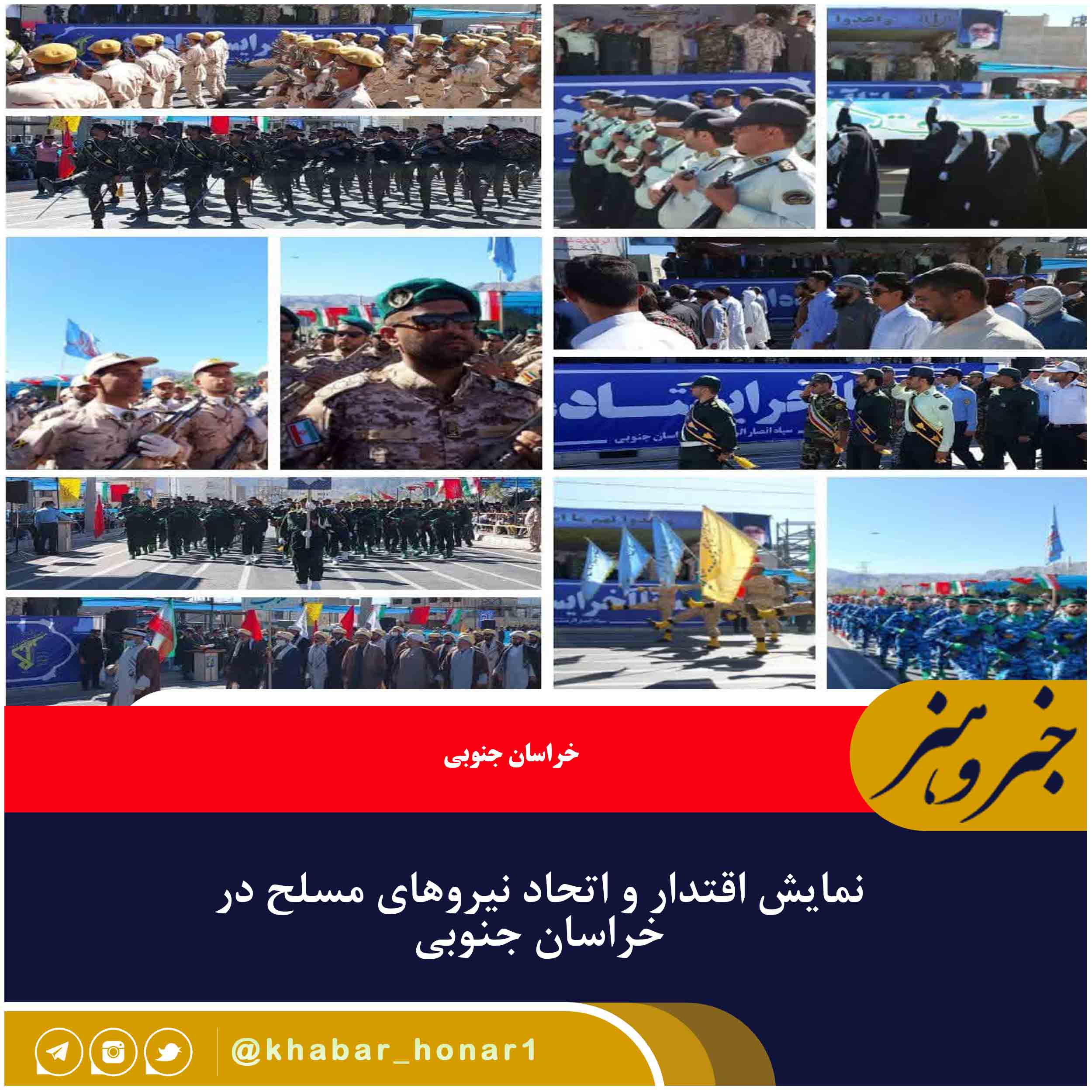 همزمان با چهل و سومین سالگرد دفاع مقدس، رژه اقتدار و اتحاد نیروهای مسلح در مرکز استان و شهرستانهای خراسان جنوبی برگزار شد.