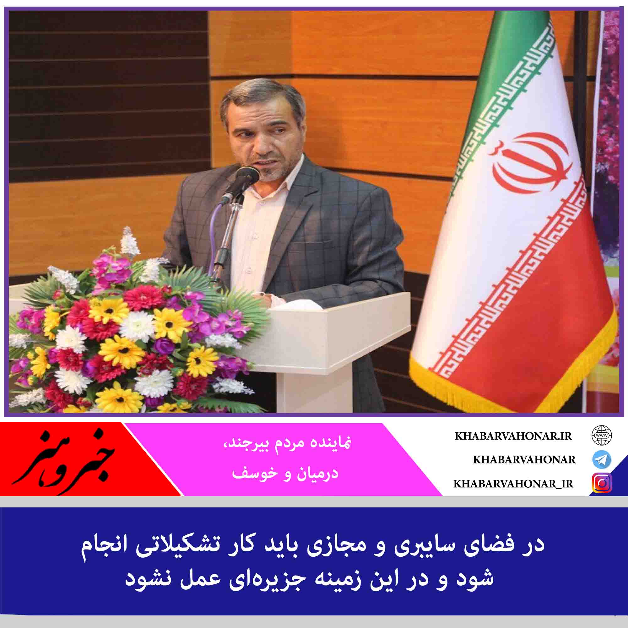 نماینده مردم بیرجند، درمیان و خوسف در مجلس شورای اسلامی گفت: در فضای سایبری و مجازی باید کار تشکیلاتی انجام شود و در این زمینه جزیرهای عمل نشود.