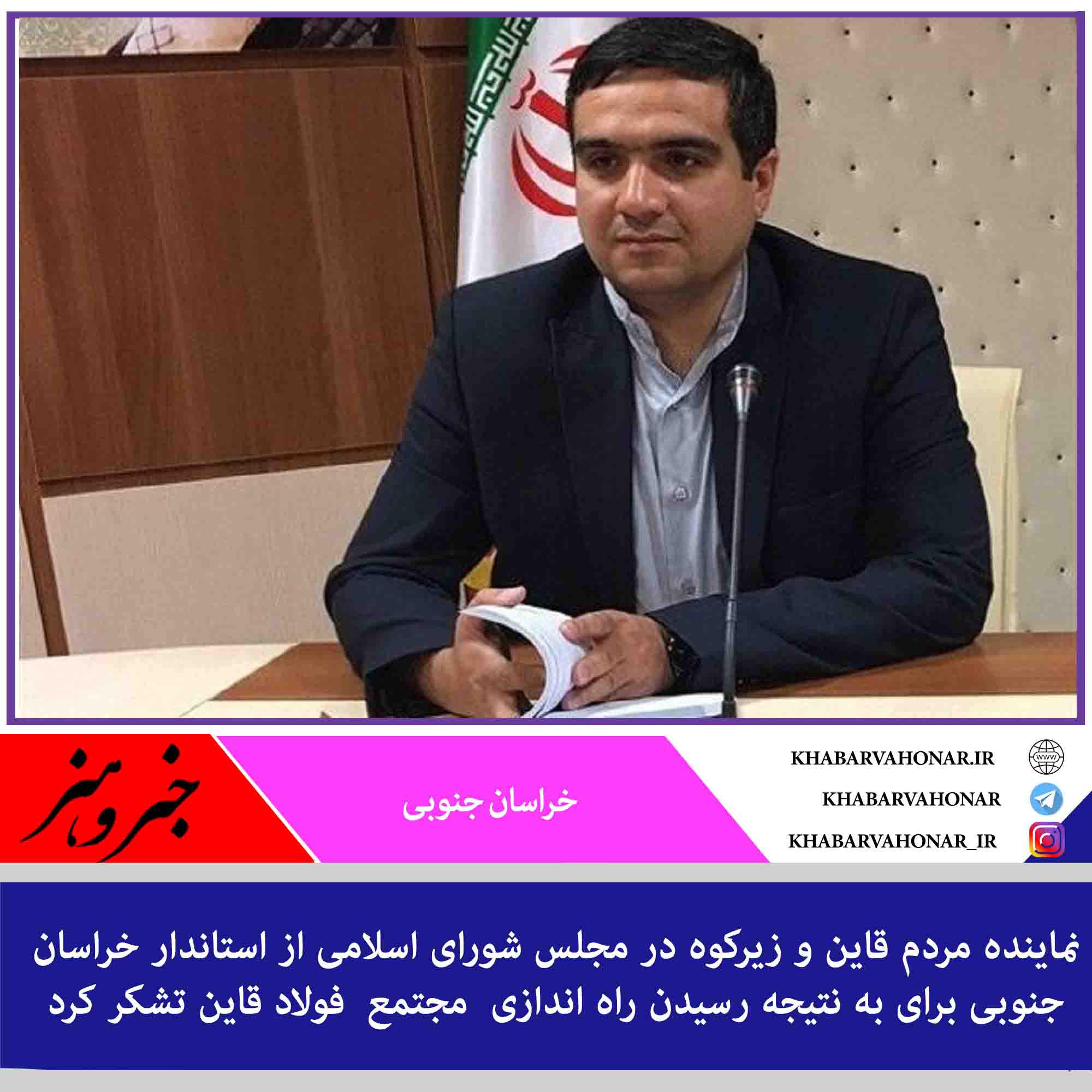 نماینده مردم قاین و زیرکوه در مجلس شورای اسلامی از استاندار خراسان جنوبی برای به نتیجه رسیدن راه اندازی این مجتمع تشکر کرد و تاکید کرد: به دنبال این هستیم که تولیدات مجتمع فولاد قاین از استان خارج نشود و برای جوانان منطقه شغل ایجاد کند و صنایع پایین دست مجتمع هم منتفع شوند.