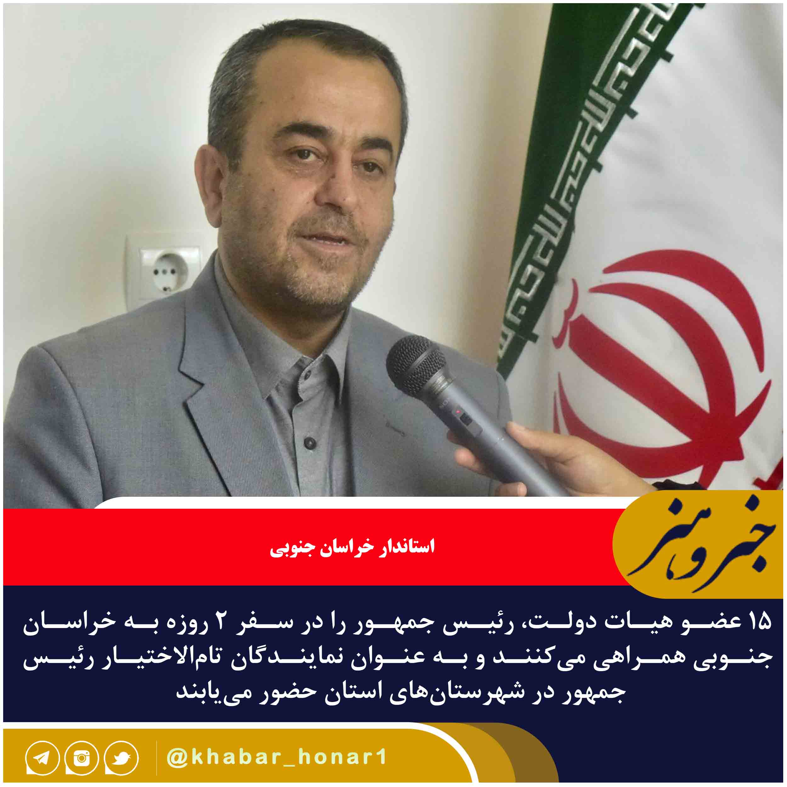 استاندار خراسان جنوبی گفت: ۱۵ عضو هیات دولت، رئیس جمهور را در سفر ۲ روزه به خراسان جنوبی همراهی میکنند و به عنوان نمایندگان تامالاختیار رئیس جمهور در شهرستانهای استان حضور مییابند.