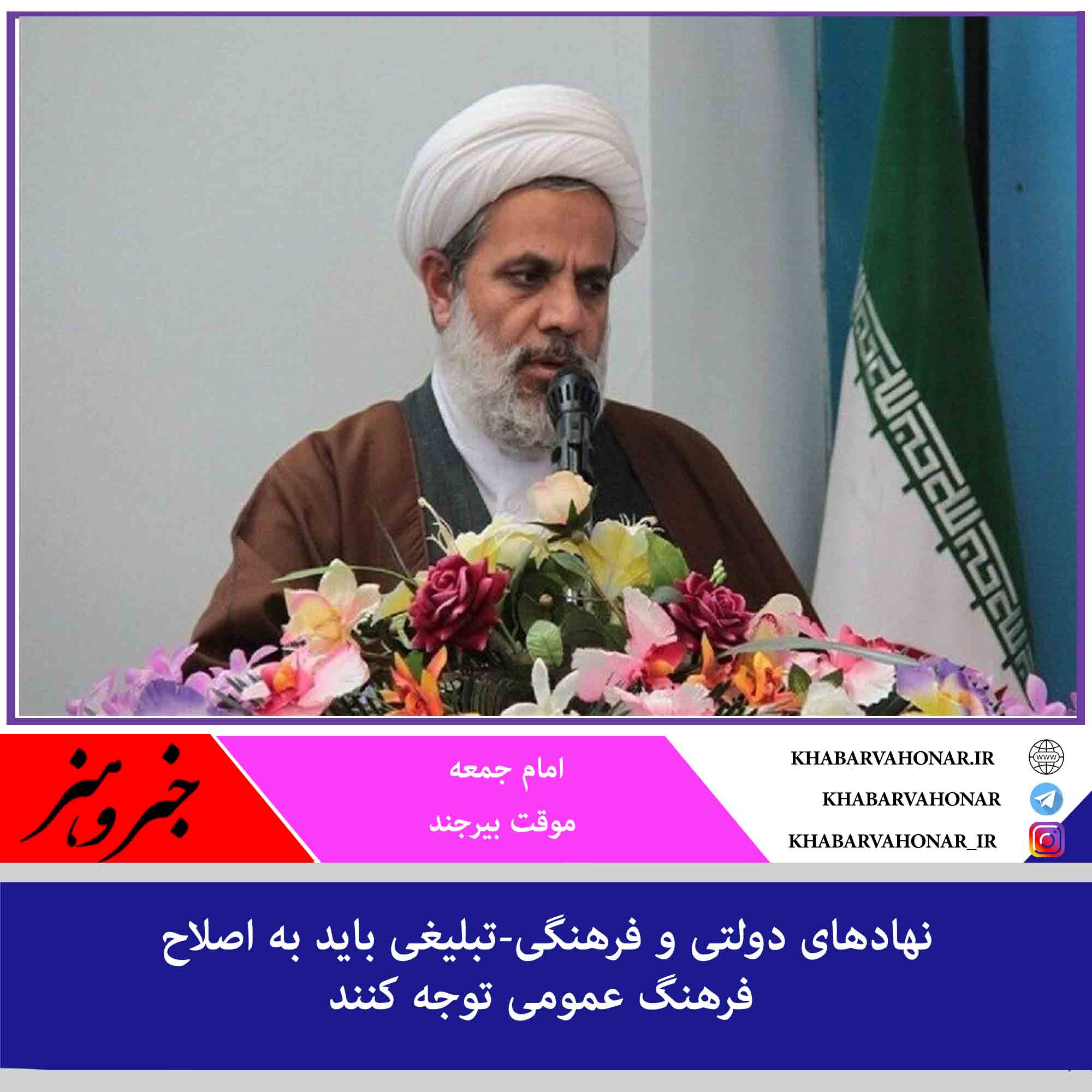 امام جمعه موقت بیرجند گفت: اصلاح و ارتقای فرهنگ عمومی محور همه امور است و در انتشار کتاب، ساخت فیلم و عرصههای هنری باید فرهنگ عمومی نمود داشته باشد.