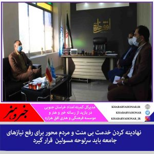 مدیرکل کمیته امداد خراسان جنوبی در بازدید از رسانه خبر و هنر و موسسه فرهنگی و هنری افق هزاره خراسان جنوبی گفت نگاه ویژه و اساسی که بعد از ۴۲ سال از انقلاب باید سر لوحه ی کار مسئولان قرار گیرد تحقق اهداف اصیل انقلاب اسلامی است. انشالله روزی برسد که سطح رفاه جامعه به سمت و سویی برود که نیازی به حضور ارگانهای حمایتی نظیر کمیته امداد امام خمینی(ره) نباشد.