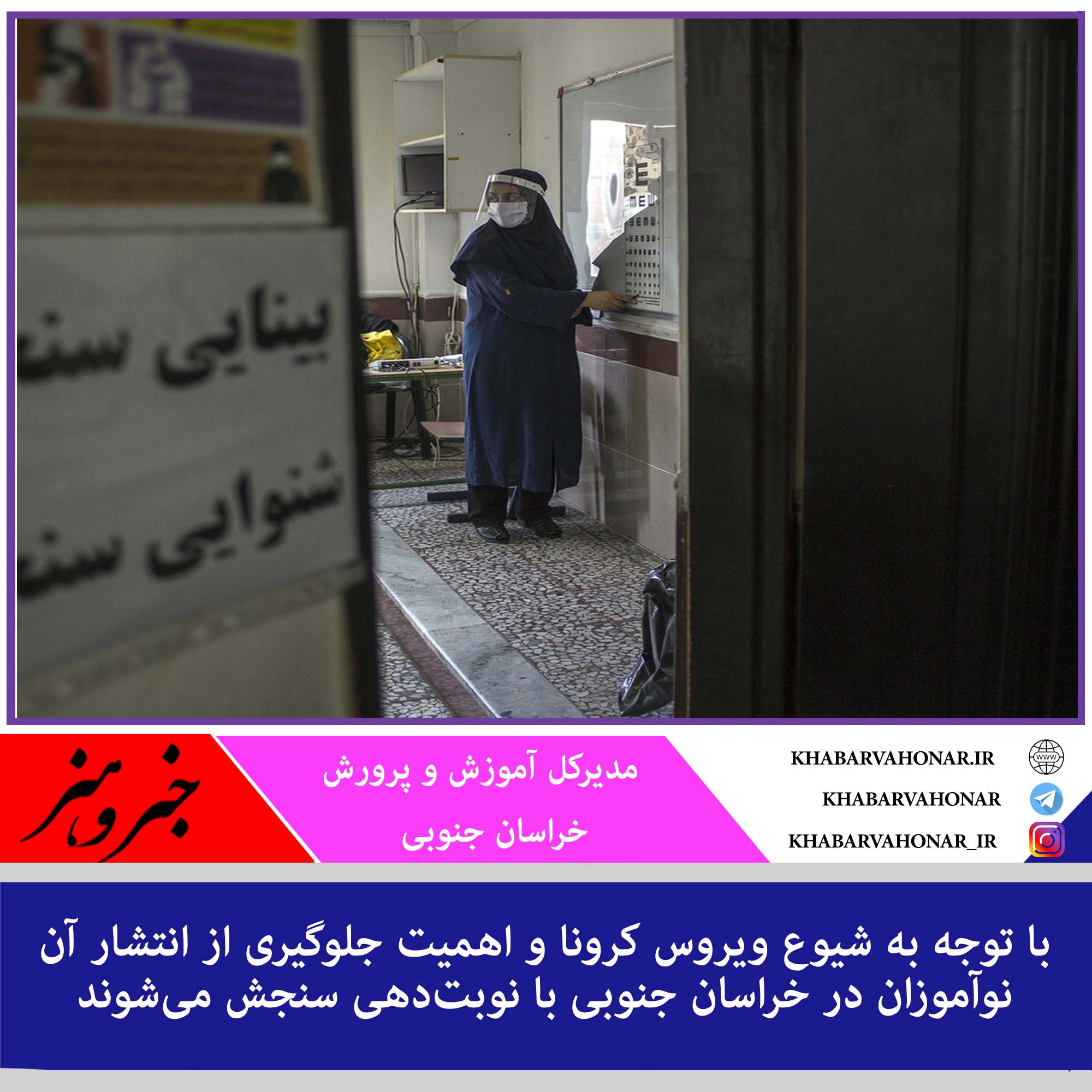 مدیرکل آموزش و پرورش خراسان جنوبی گفت: با توجه به شیوع ویروس کرونا و اهمیت جلوگیری از انتشار آن تاکنون هشت هزار و ۳۹۱ نوآموز بدو ورود به دبستان در طرح سنجش سلامت جسمانی و آمادگی تحصیلی نوبتدهی شدهاند.