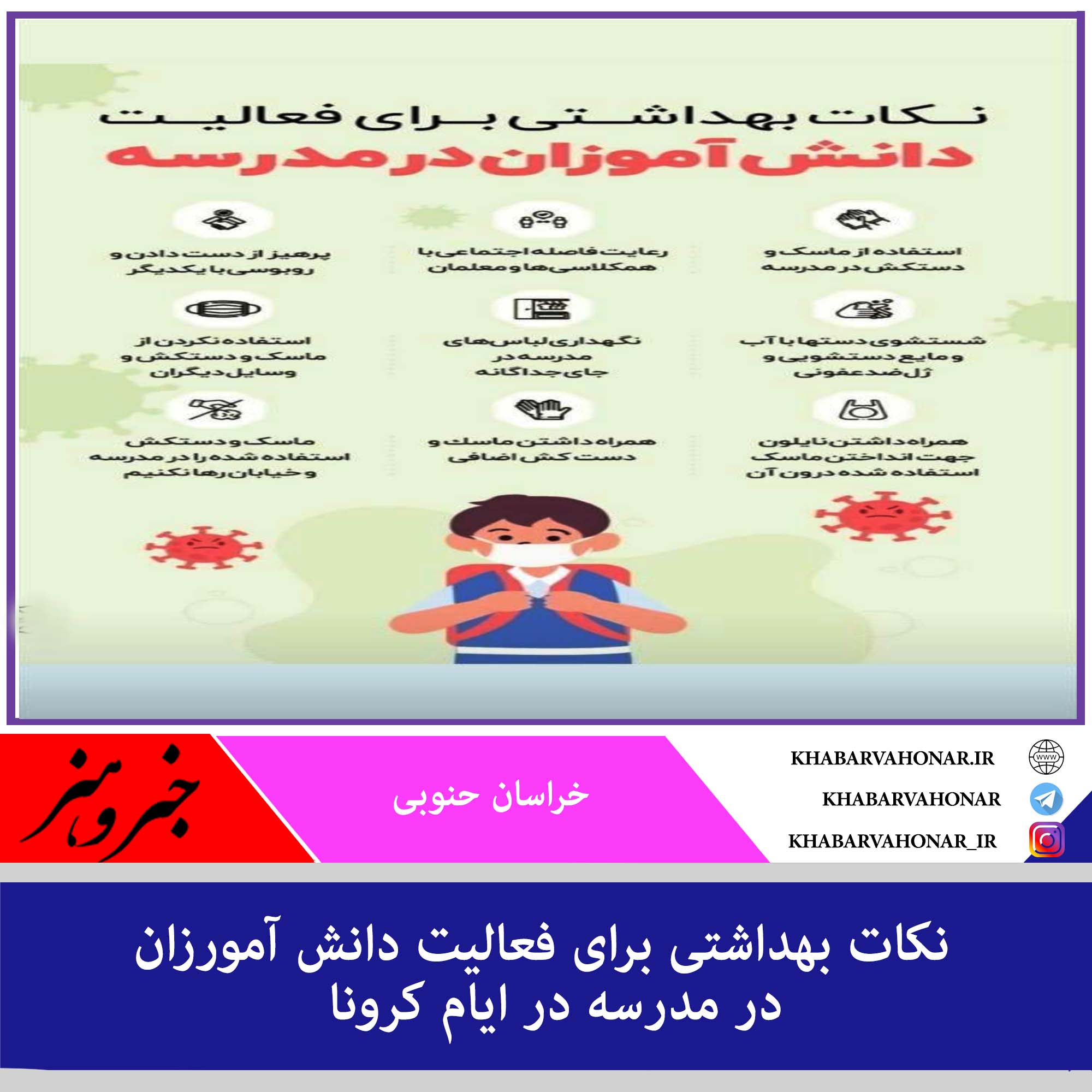 نکات بهداشتی برای فعالیت دانش آمورزان در مدرسه در ایام کرونا