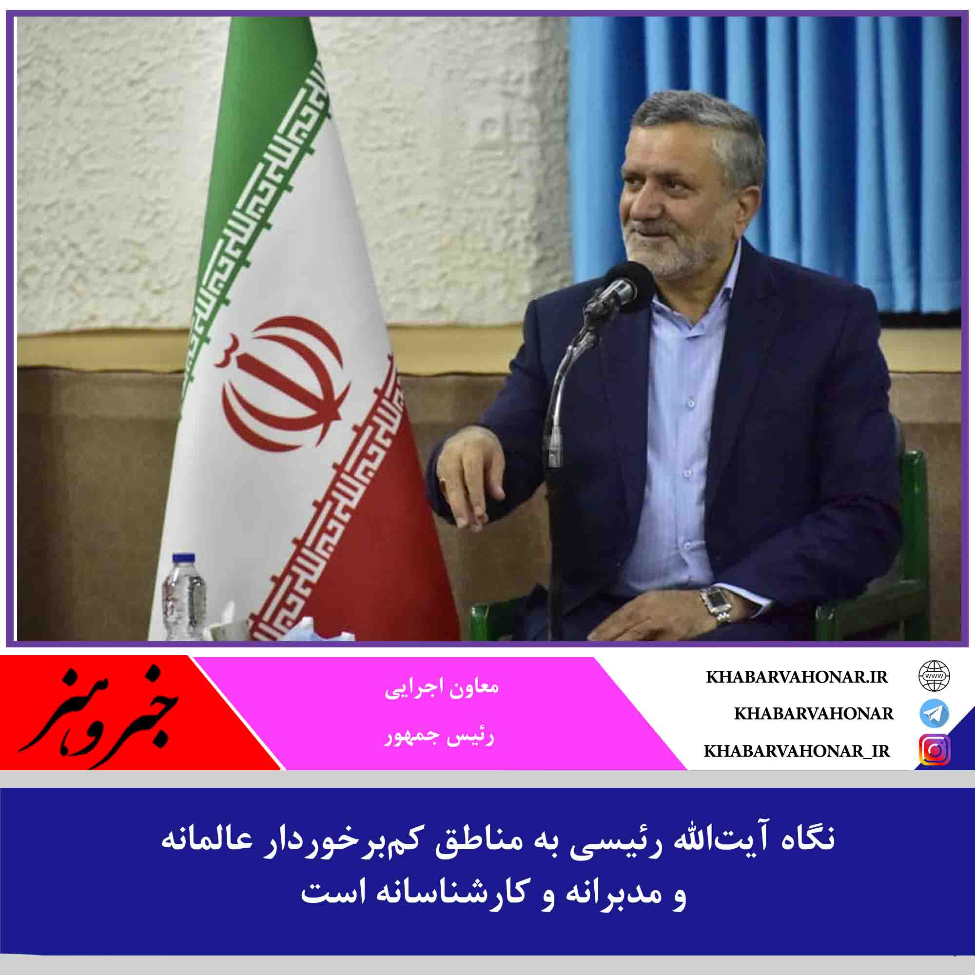 معاون اجرایی رئیس جمهور گفت: نگاه آیتالله رئیسی به مناطق کمبرخوردار عالمانه و مدبرانه و کارشناسانه است و تلاش داریم تا استانهای کمبرخوردار را به شاخصهای مطلوب برسانیم.