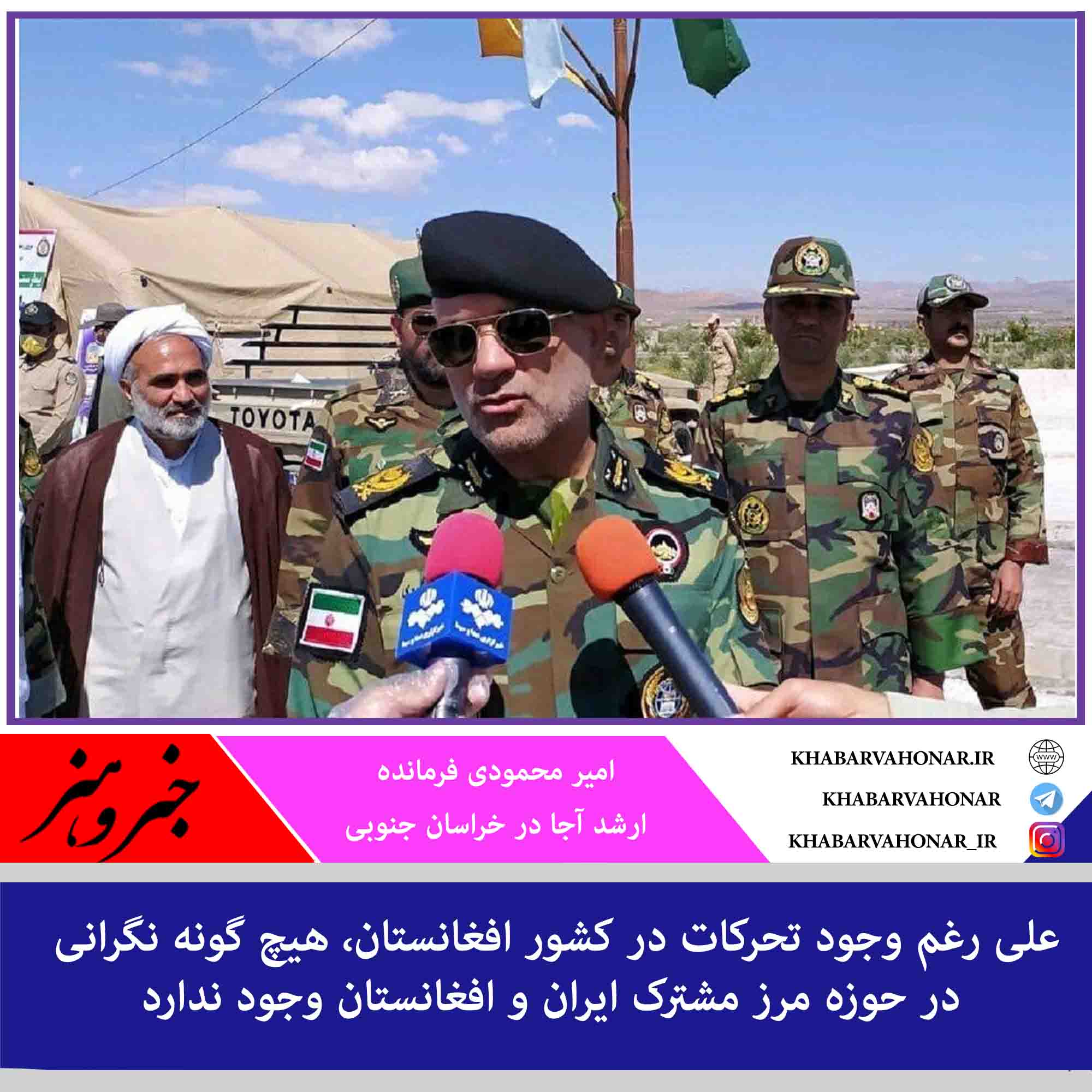 فرمانده ارشد آجا در خراسان جنوبی گفت: علی رغم وجود تحرکات در کشور افغانستان، هیچ گونه نگرانی در حوزه مرز مشترک ایران و افغانستان وجود ندارد.