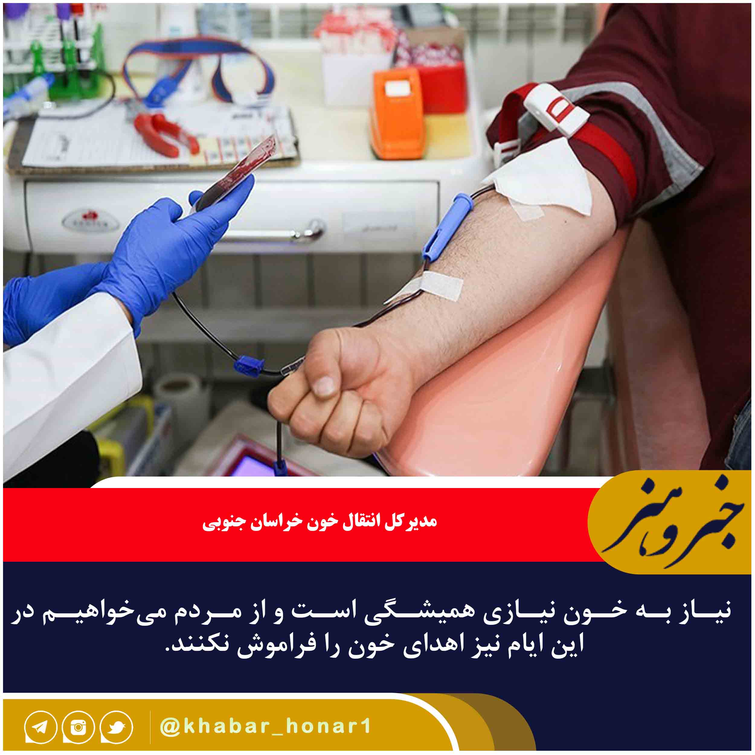 کامبیز مهدی‌زاده با اشاره به فعالیت مراکز اهدای خون در ایام تعطیل،اظهار کرد: مراکز خون گیری بیرجند، قاین و طبس در روزهای دوم و سوم فروردین از ساعت ۸ تا ۱۲ و در روزهای سوم و چهارم فروردین با توجه به آغاز ماه رمضان از ساعت ۷:۳۰ تا ۲۴ فعال است.