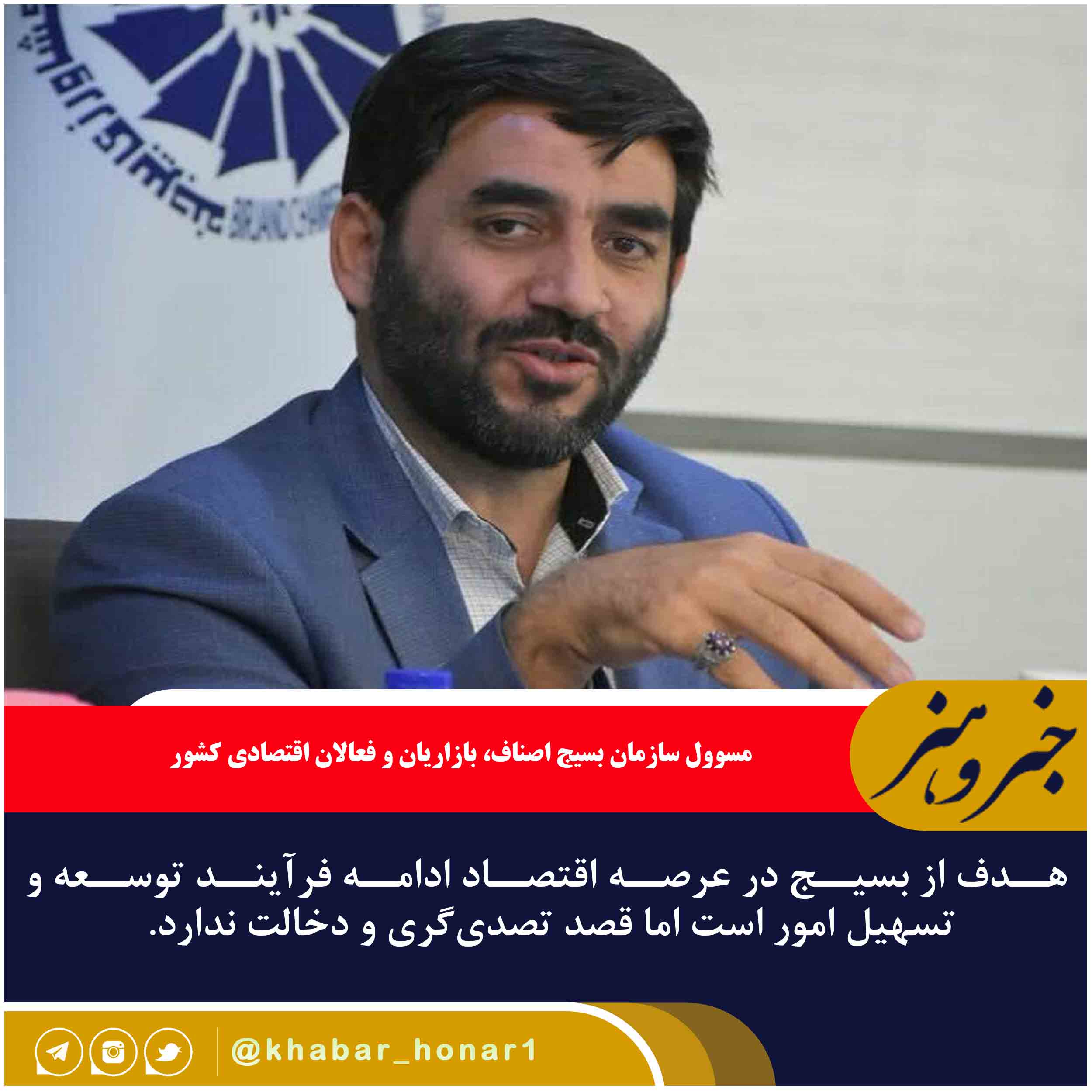 مسوول سازمان بسیج اصناف، بازاریان و فعالان اقتصادی کشور گفت: هدف از بسیج در عرصه اقتصاد ادامه فرآیند توسعه و تسهیل امور است اما قصد تصدیگری و دخالت ندارد.
