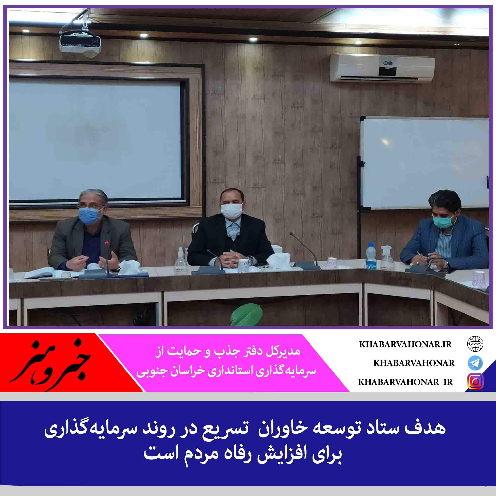 مدیرکل دفتر جذب و حمایت از سرمایهگذاری استانداری خراسان جنوبی گفت: شناسایی و جذب سرمایهگذاران از اولویتهای این استان بوده و هدف ستاد توسعه خاوران نیز تسریع در روند سرمایهگذاری برای افزایش رفاه مردم است.