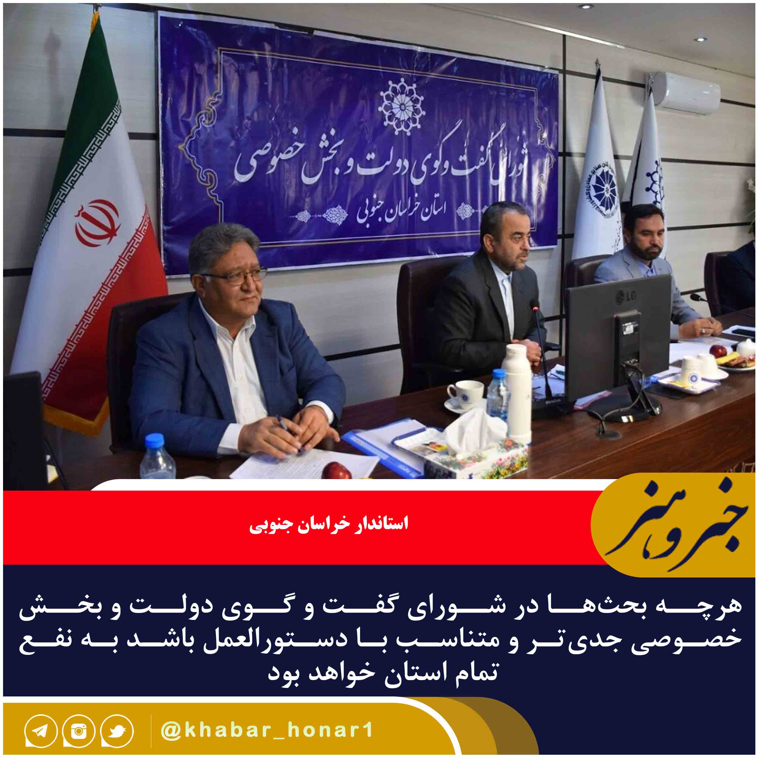 استاندار خراسان جنوبی گفت: در شورای گفت و گوی دولت و بخش خصوصی باید مسائل و موضوعات کلان استان مورد بررسی قرار گیرد تا شاهد حل و فصل آنها باشیم.
