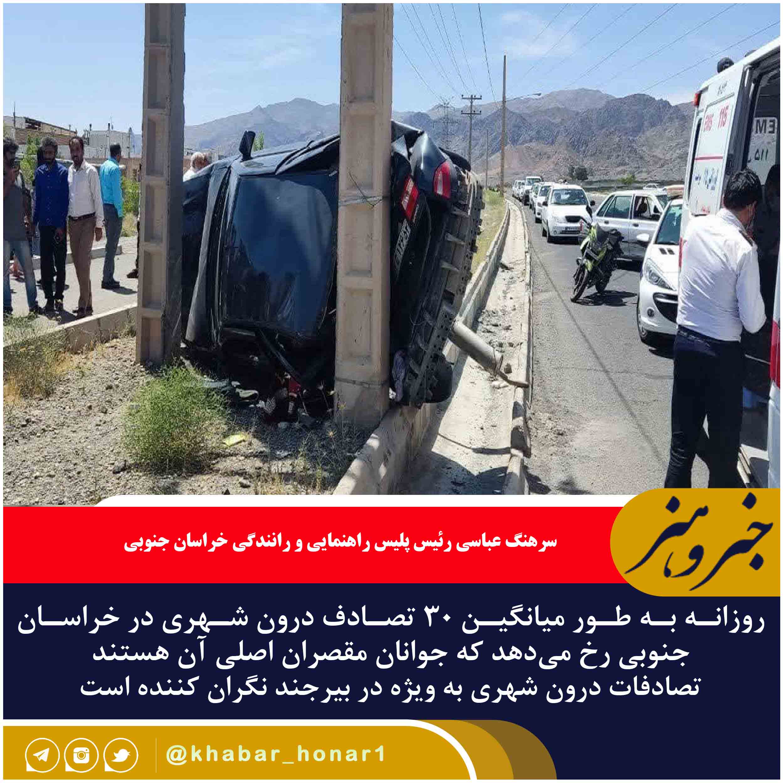 روزانه به طور میانگین ۳۰ تصادف درون شهری در خراسان جنوبی رخ میدهد که جوانان مقصران اصلی آن هستند.